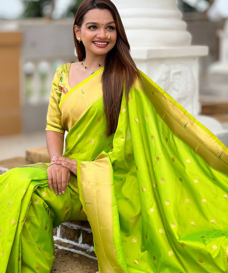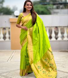 | • | Saree | : | Color- Parrot Green / Fabric- Paithani Silk |
