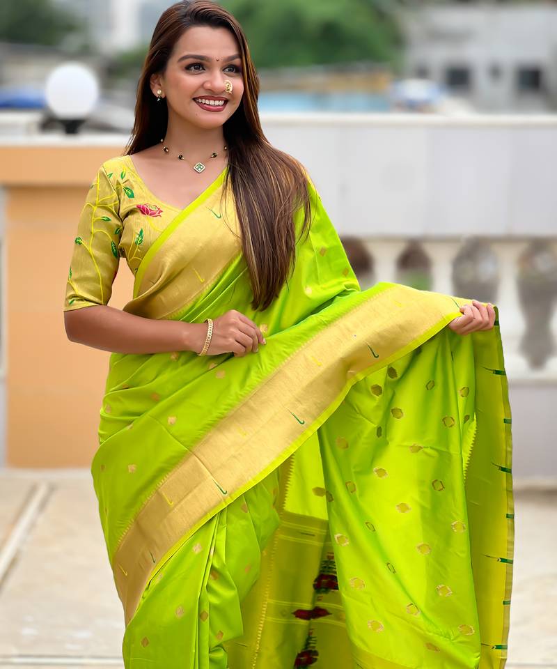 | Product Name | Soft Paithani Silk Saree With Zari Weawing Motifs Design And Meenakari Weawing Rich Pallu | |