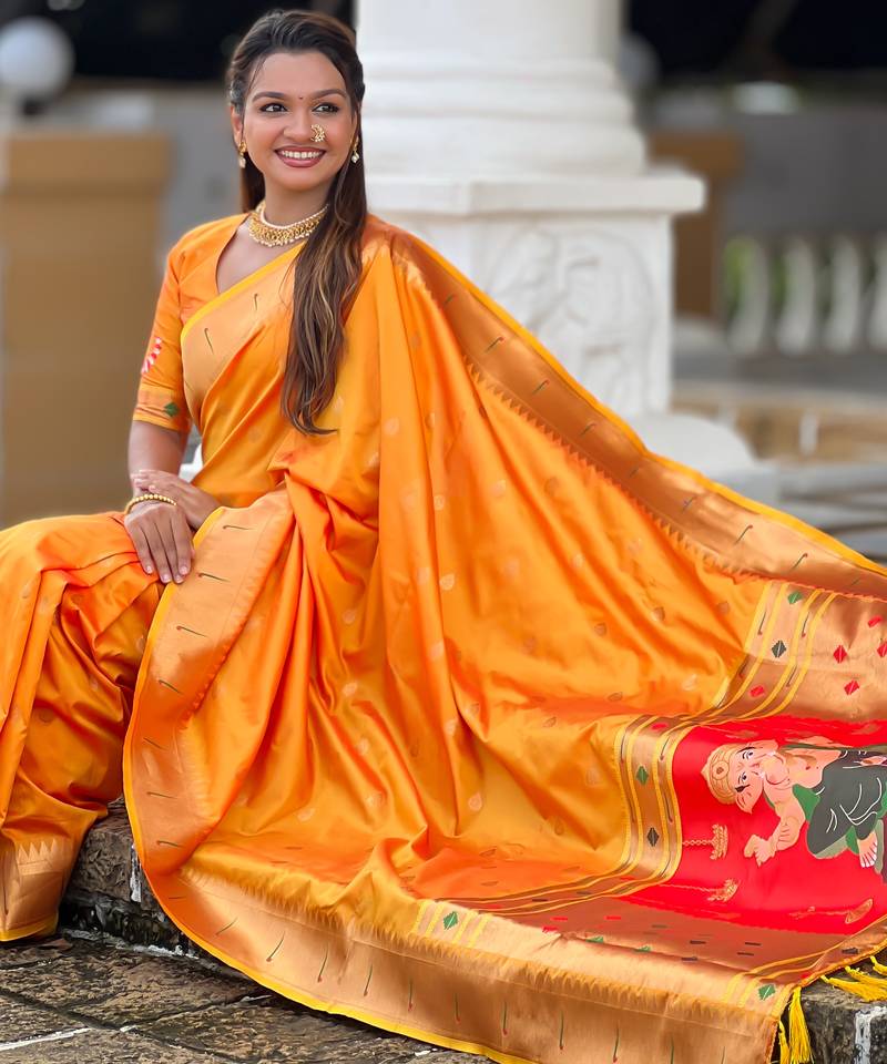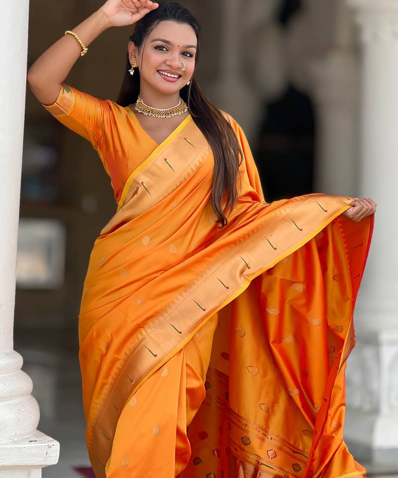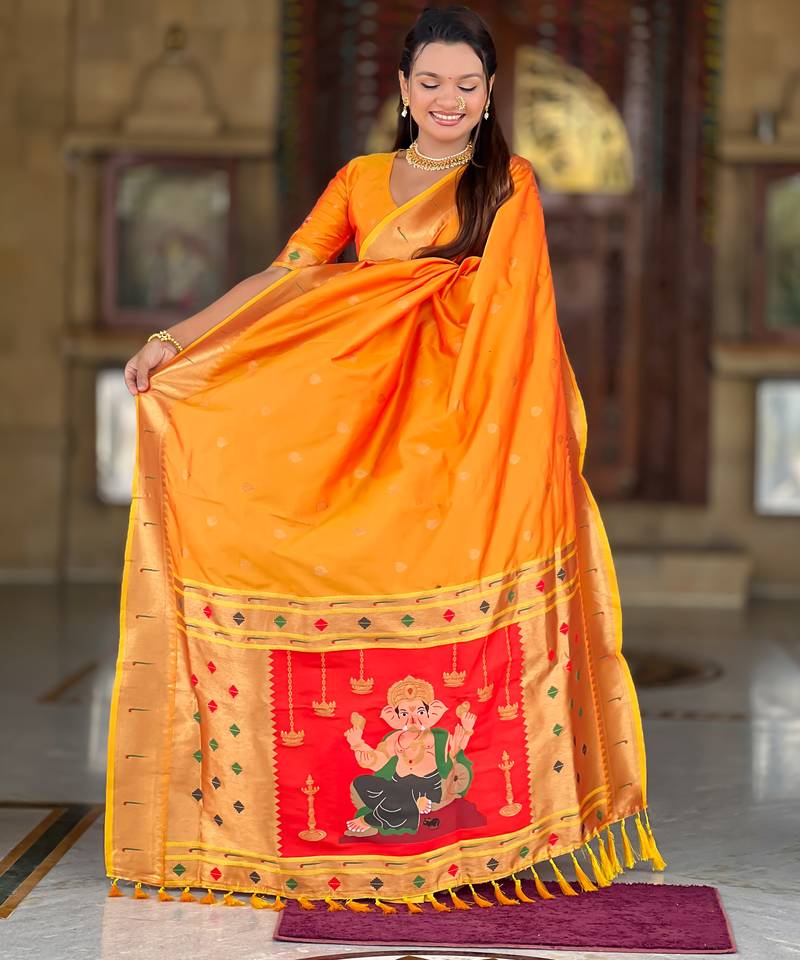 | • | Saree | : | Color- Orange / Fabric- Paithani Silk |