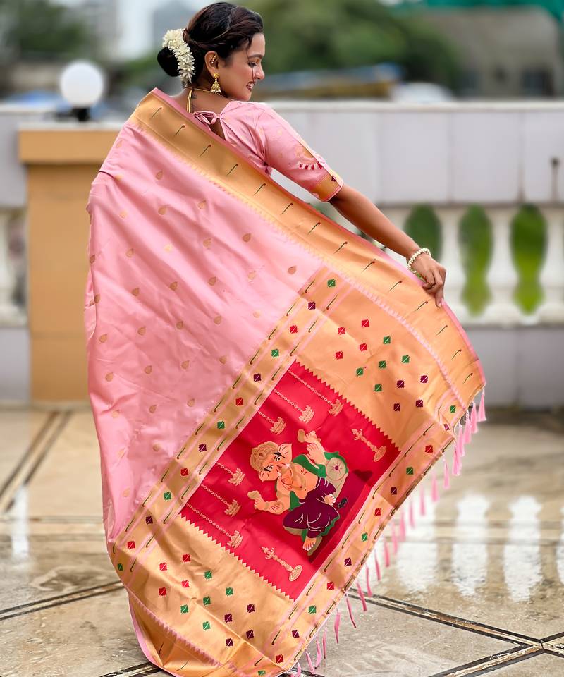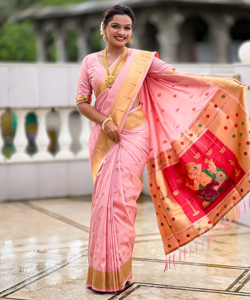 | • | Saree | : | Color- Baby Pink / Fabric- Paithani Silk |