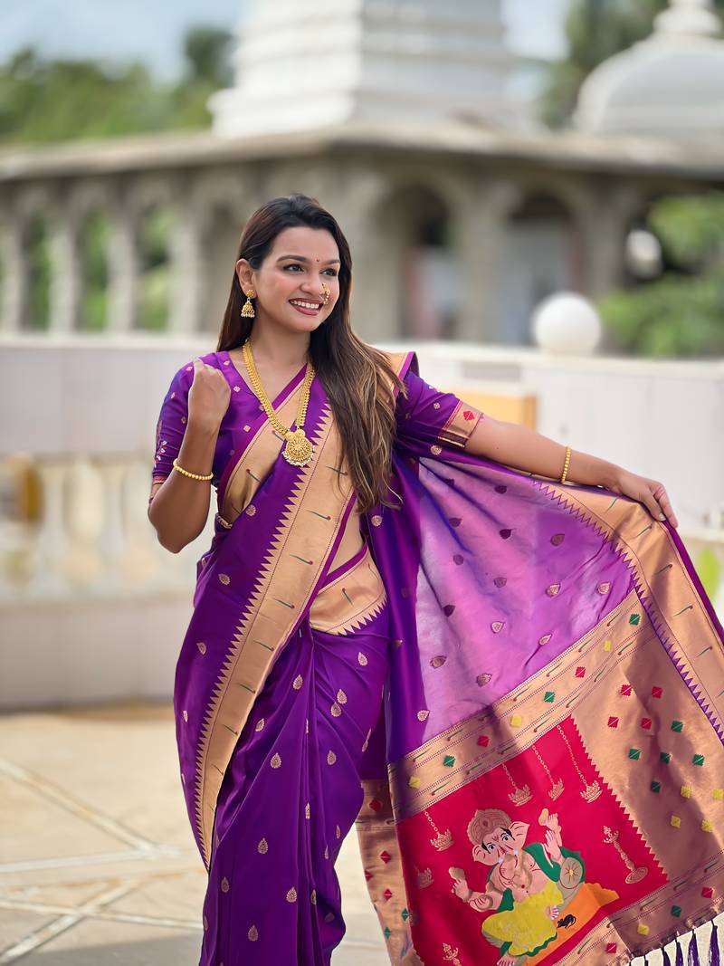 | • | Saree | : | Color- Purple / Fabric- Paithani Silk |