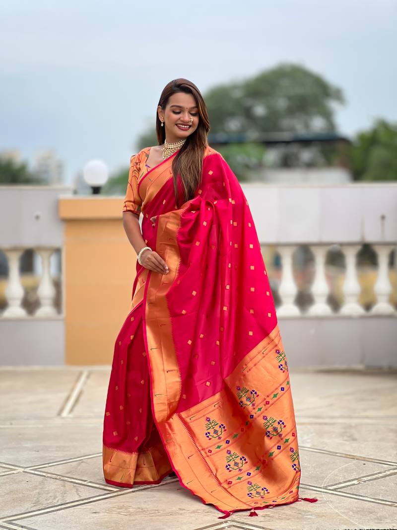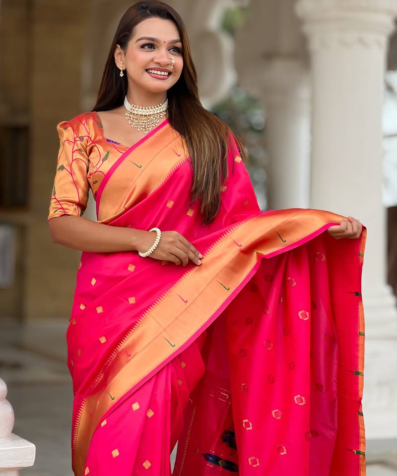 Product Name Soft Paithani Silk Saree With Zari Weawing Motifs Design And Meenakari Weawing Rich Pallu