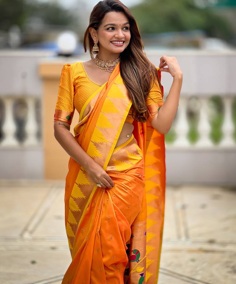 | Product Name | Soft Paithani Silk Saree With Zari Weawing Motifs Design And Meenakari Weawing Rich Pallu | |
