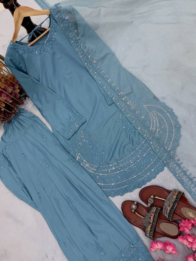 | Product Name | Stylish Suit Set With Dupatta Blue Color Palazzo Suit Set | |