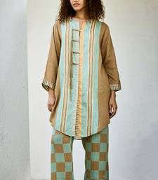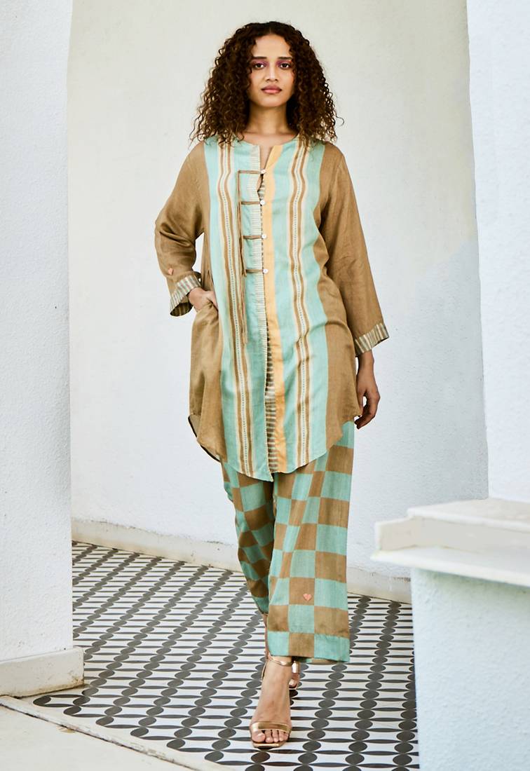 Brown printed linen kurta set