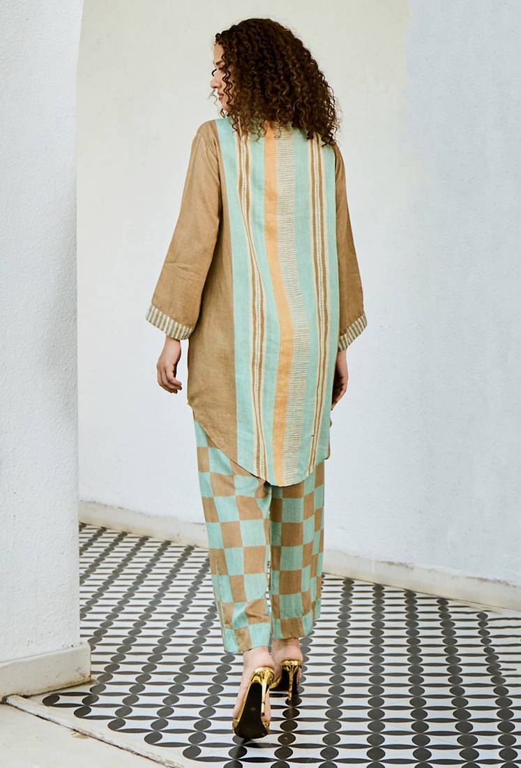 | Product Name | Brown Printed Linen Kurta Set | |