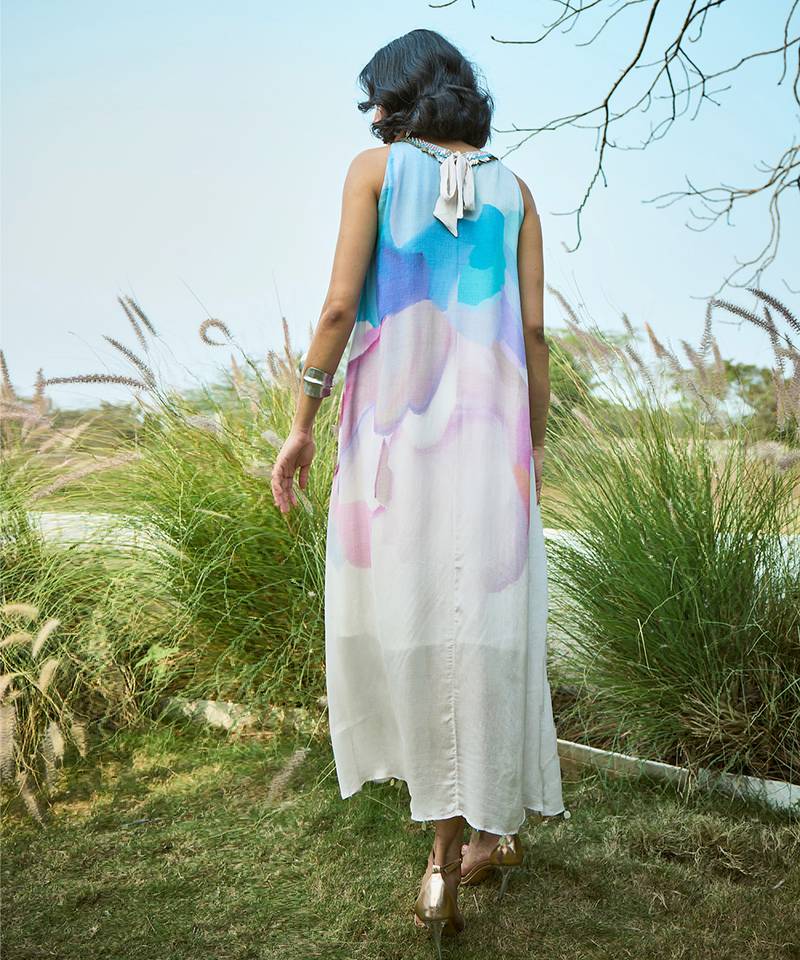 Multicolor printed chiffon dress
