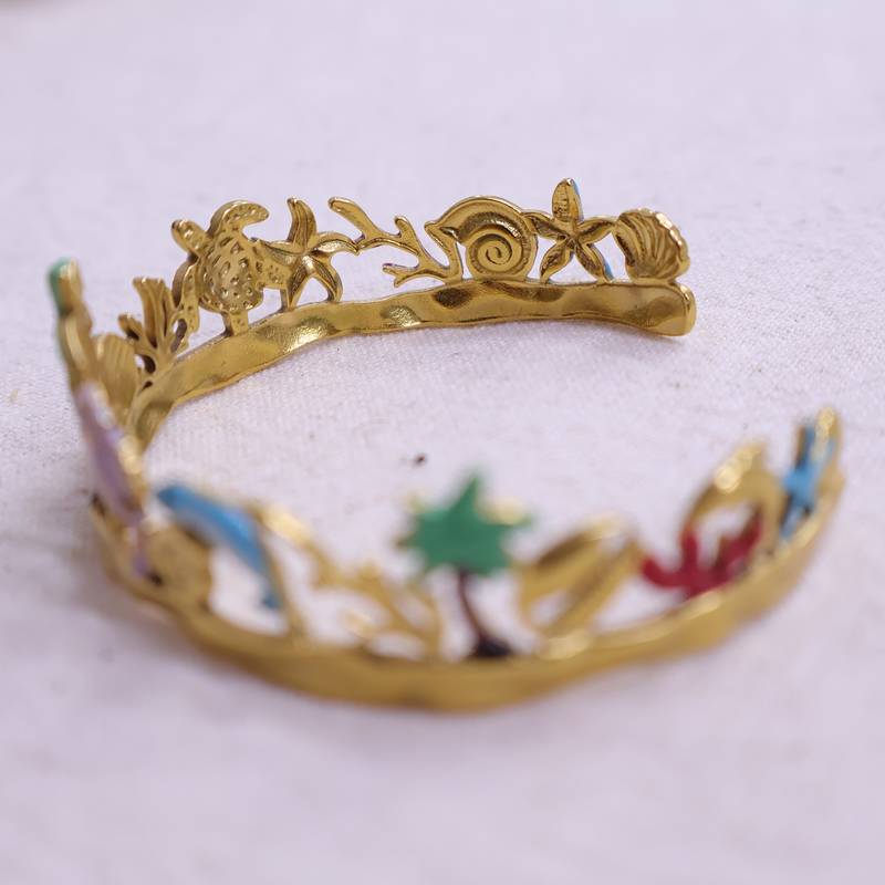 | Product Name | Women S Gold Plated Tropical Theme Open Bangle | Shell, Starfish & Palm Tree Design Stainless Steel Bracelet | |