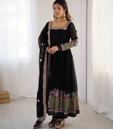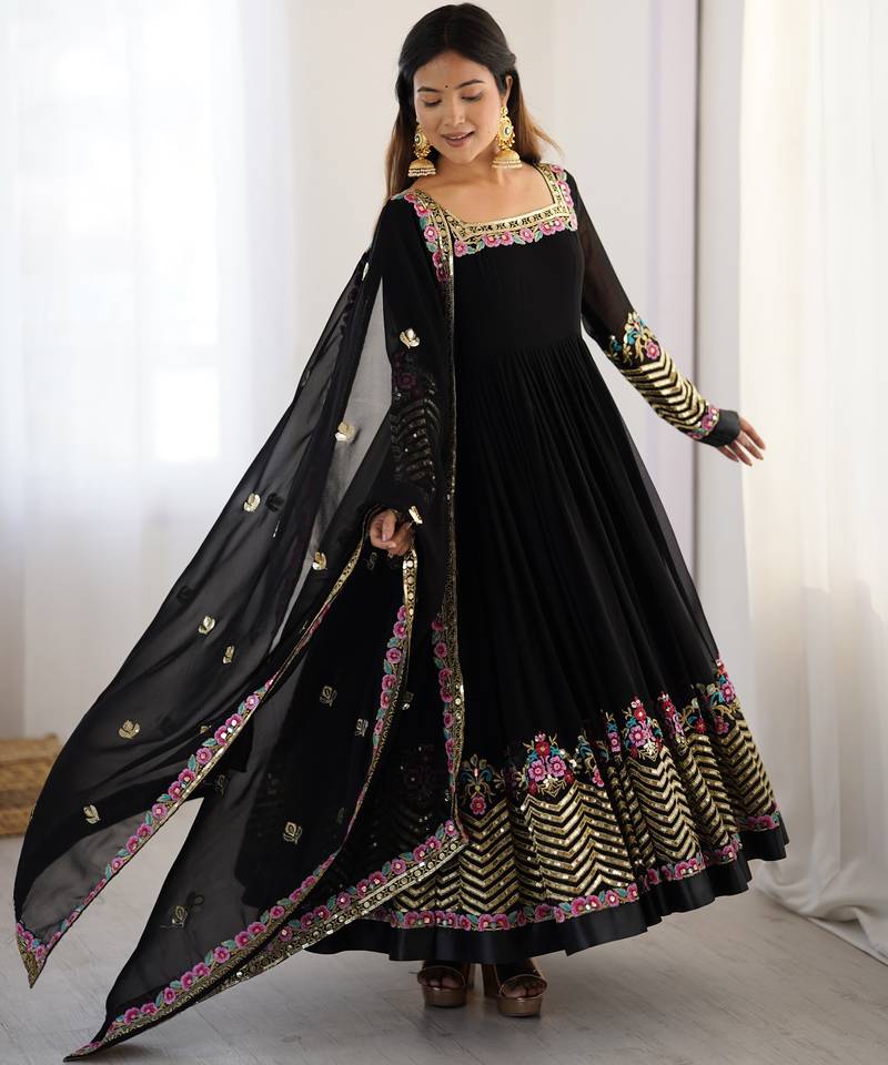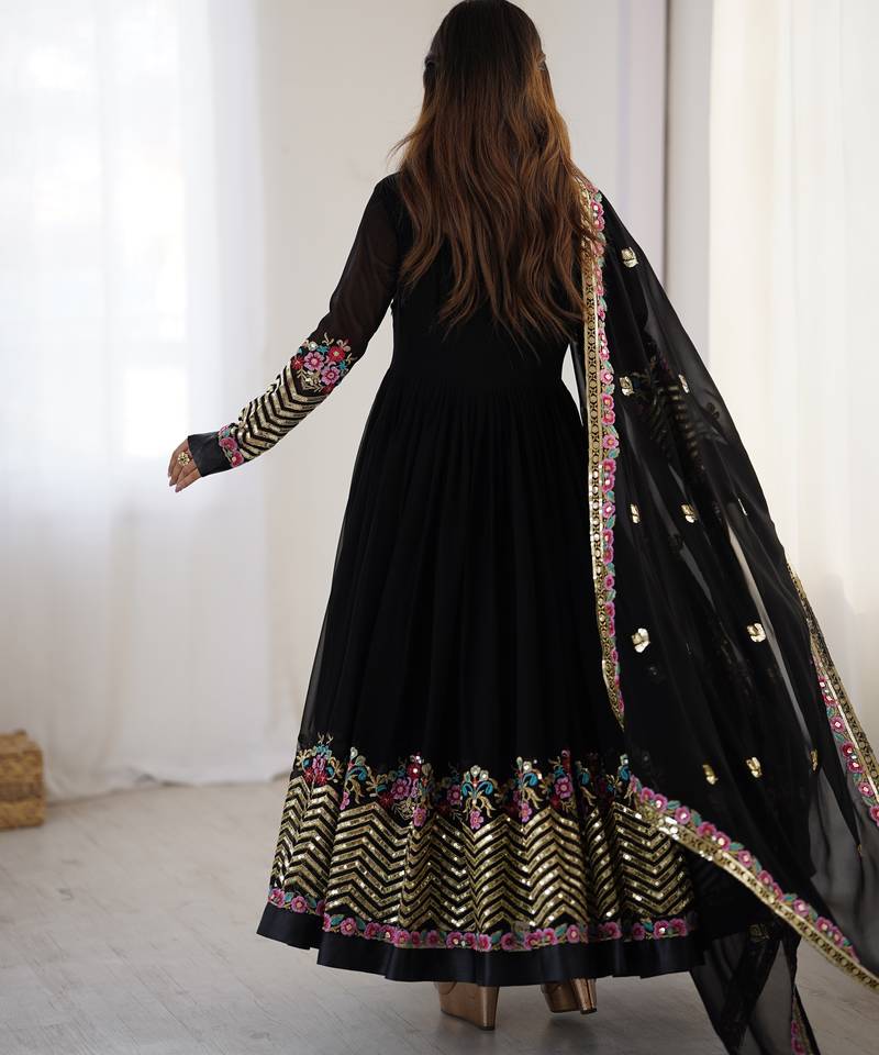 Black festive wear designer heavy georgette heavy multi thread embroidery sequence work readymade suit stitched