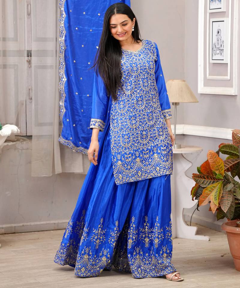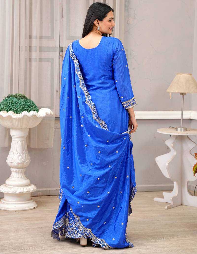 | Product Name | Blue Festive Wear Designer Chinon Sequence Embroidery Work Readymade Suit | |