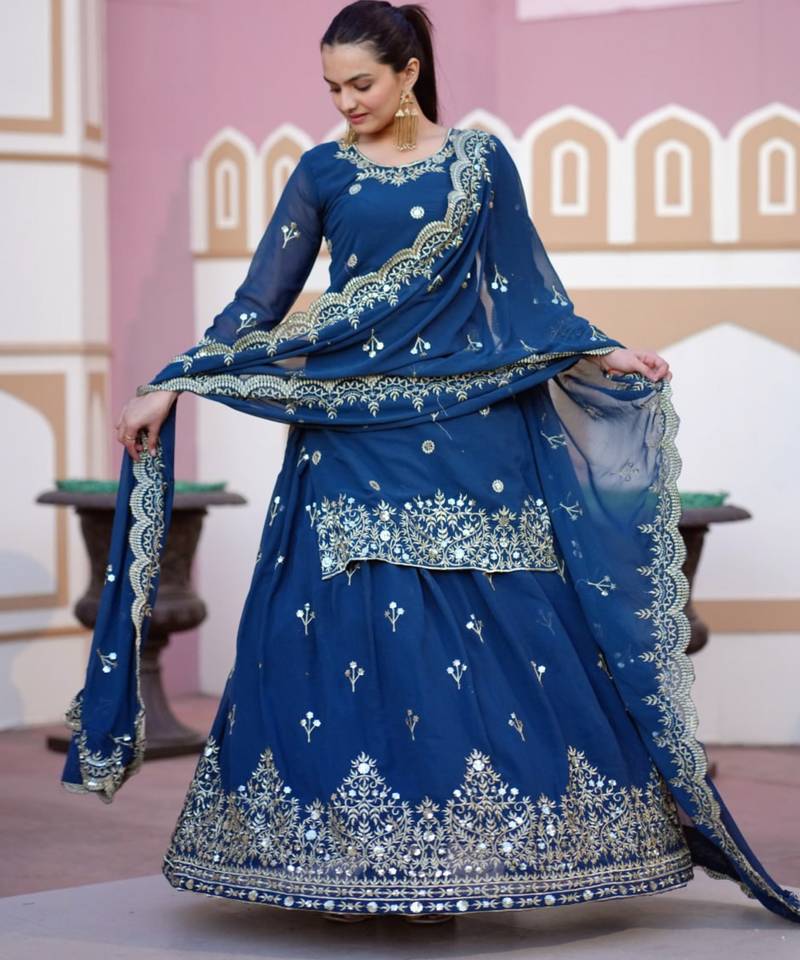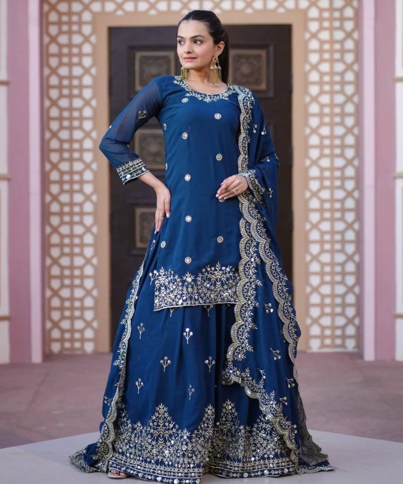 Product Name Blue Festive Wear Designer Fox Georgette Readymade Suit