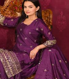 Brinjal festive wear designer chinon sequence embroidery work readymade suit stitched