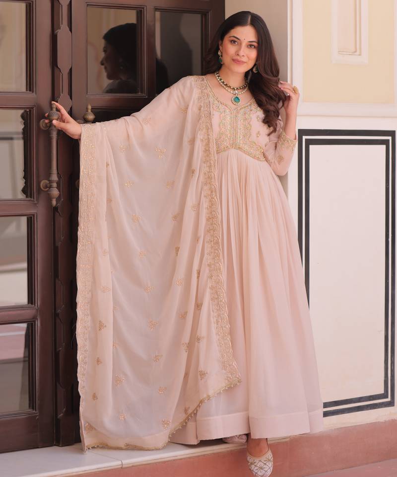 | Product Name | Cream Festive Wear Designer Star Georgette Sequence Multi Embroidered Work Readymade Suit | |