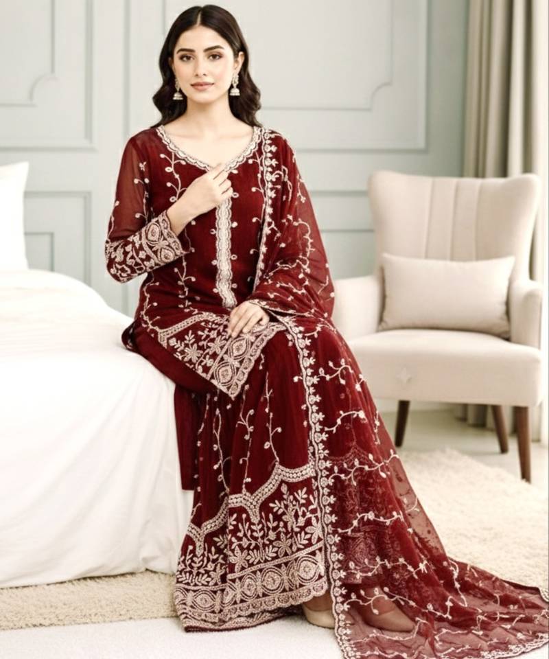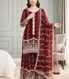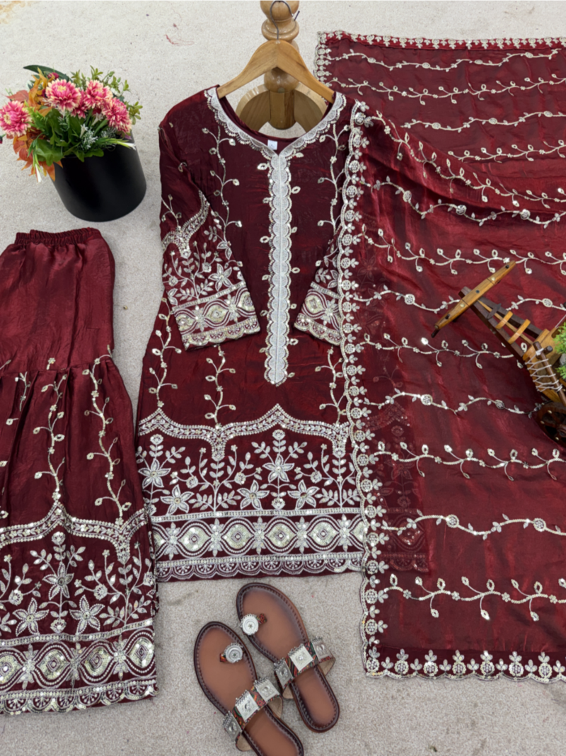 Maroon festive wear designer pure fendy silk sequence work readymade suit stitched