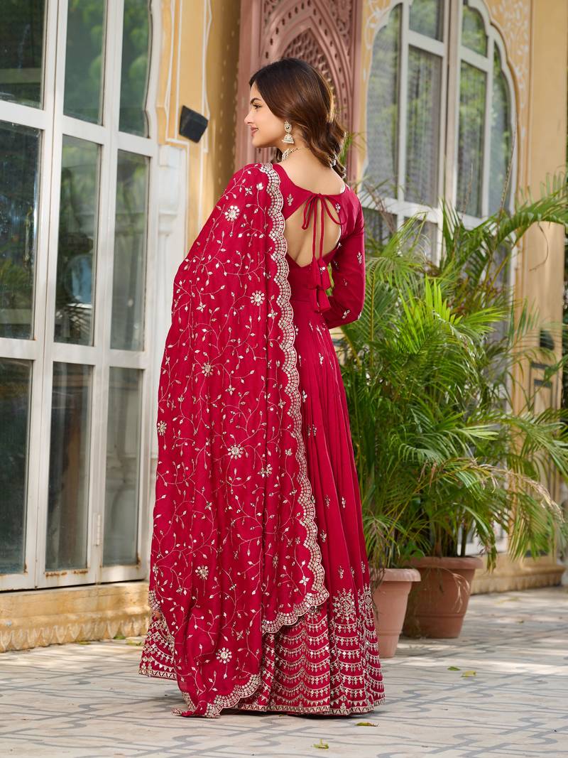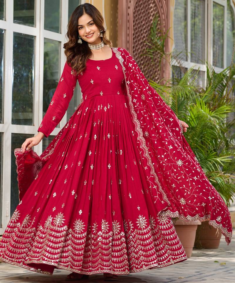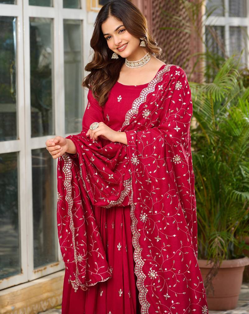 Maroon festive wear designer pure vichitra silk heavy 7mm sequence embroidery work readymade suit stitched