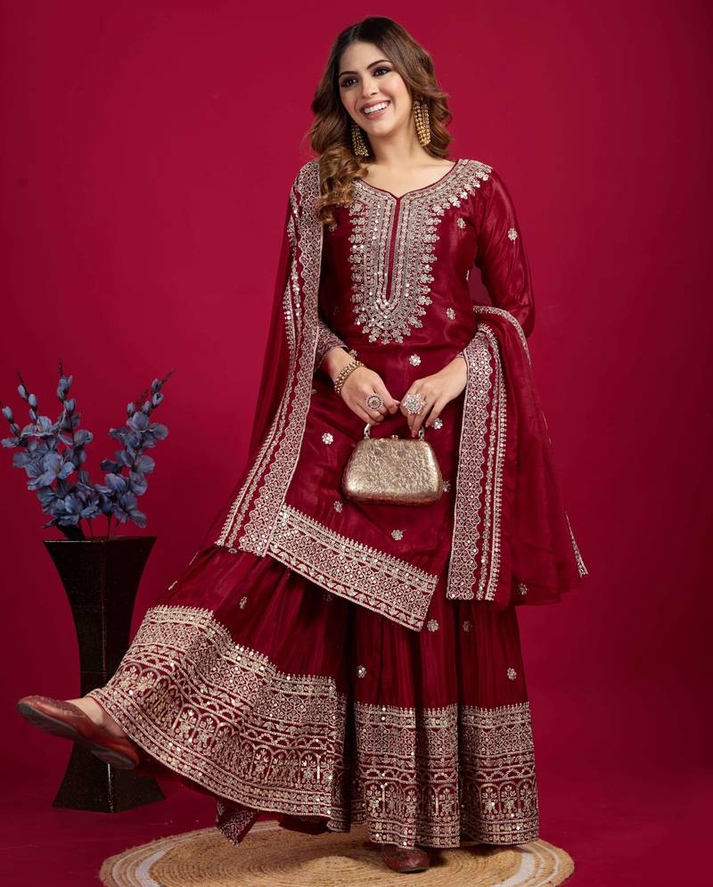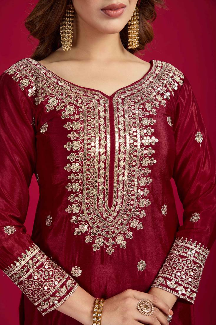 Maroon festive wear designer trendy elementary designer readymade suit collection stitched
