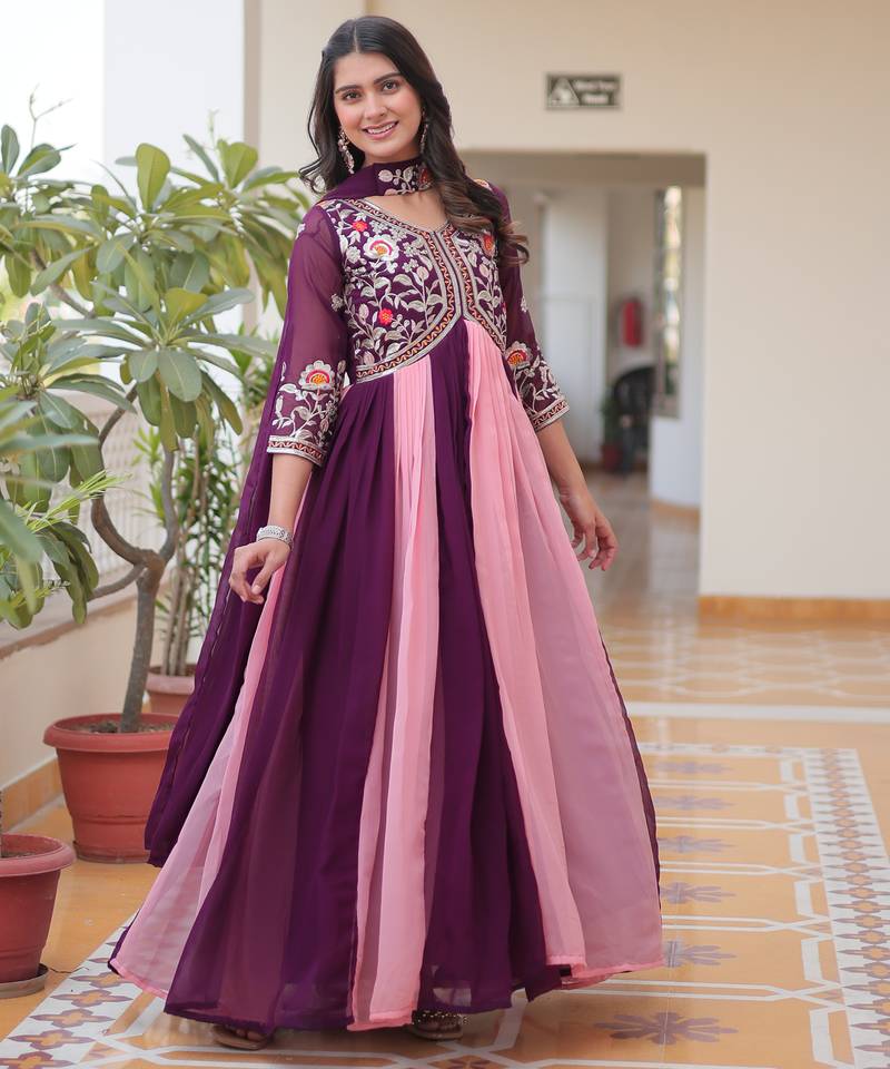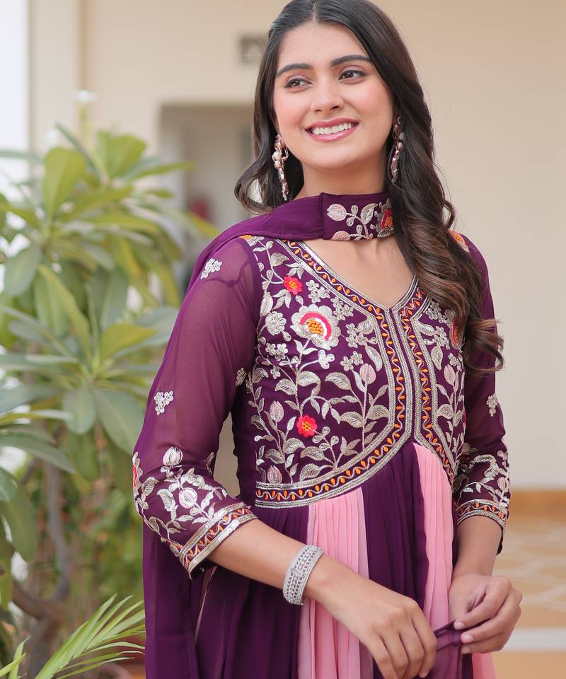 Multi festive wear designer fox georgette sequence thred embroidery work readymade suit stitched