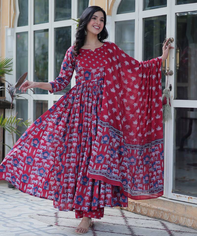 Multi festive wear designer pure cotton readymade suit stitched