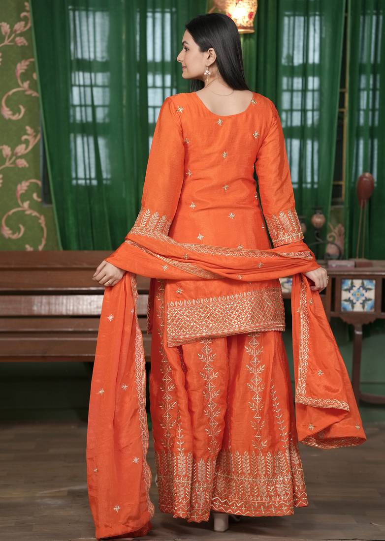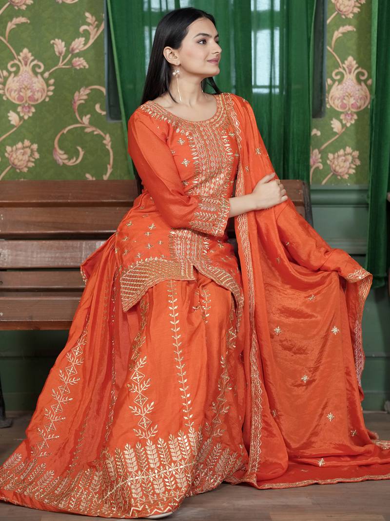 | Product Name | Orange Festive Wear Designer Chinon Sequence Embroidery Work Readymade Suit | |