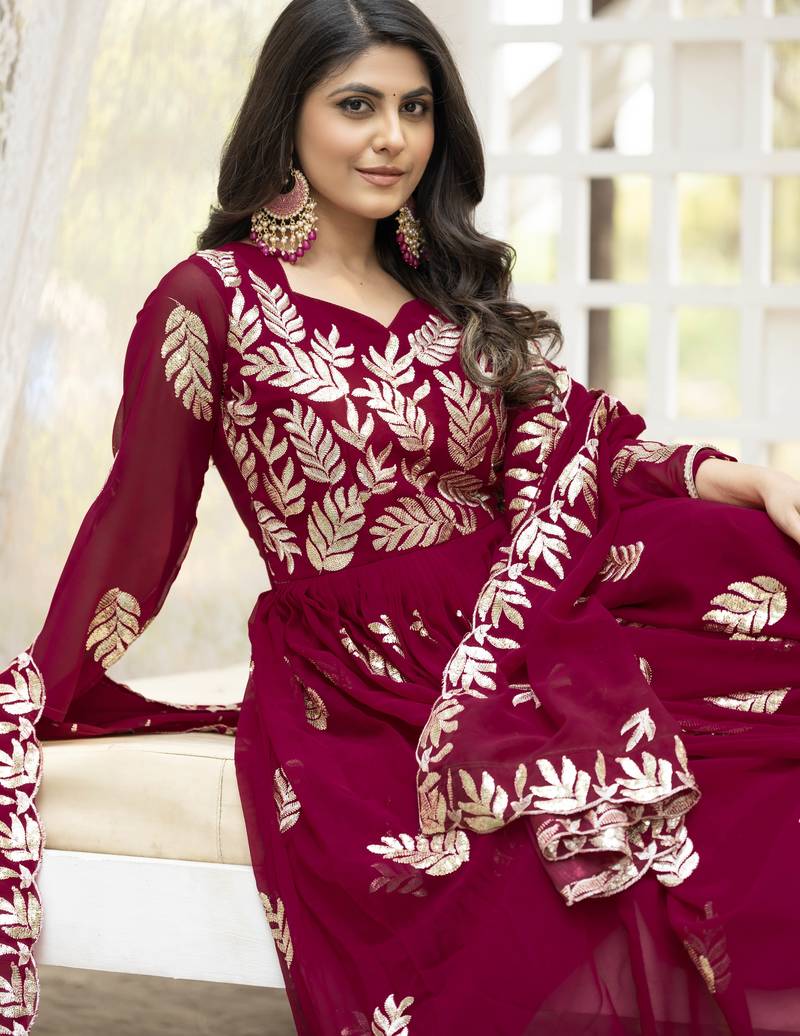 Product Name Pink Festive Wear Designer Fox Georgette Readymade Suit
