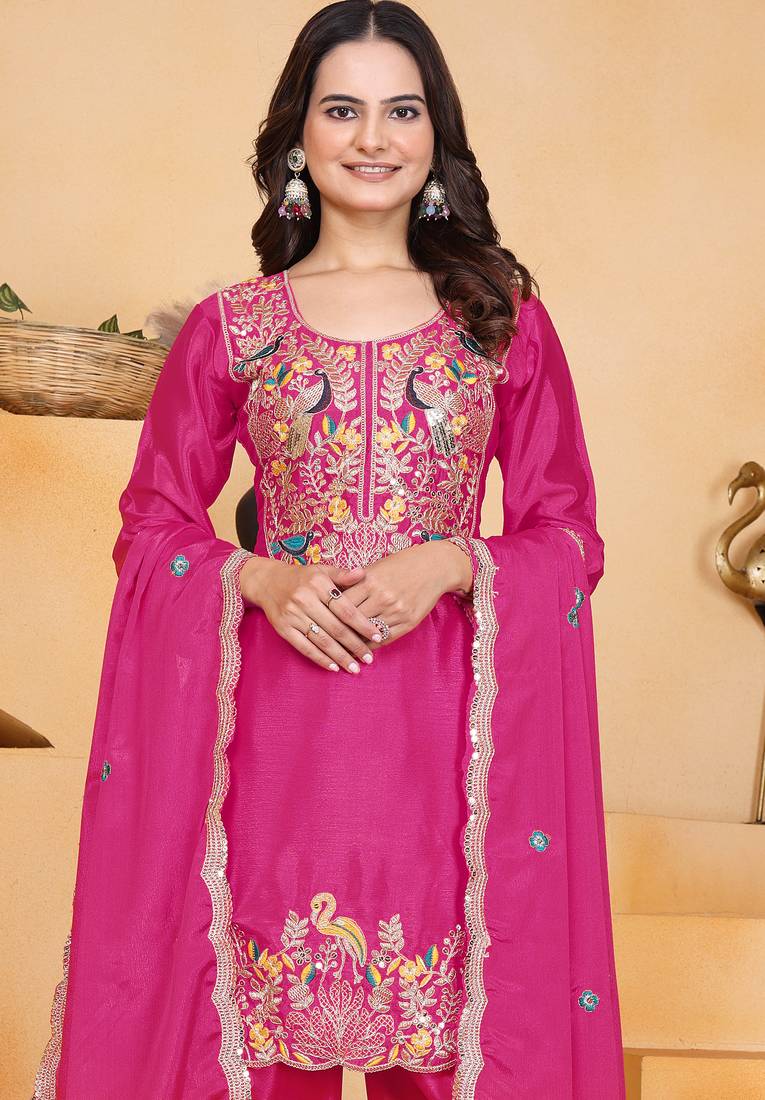 Rani festive wear designer chinon coding sequence embroidery work readymade suit