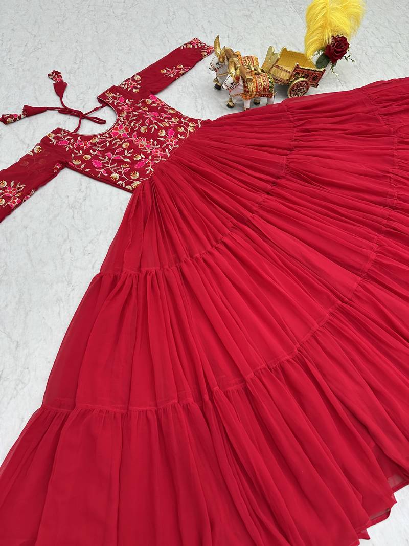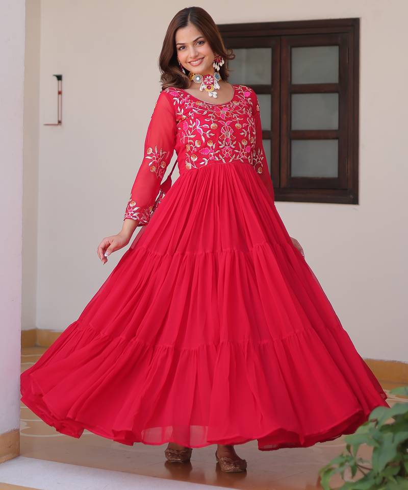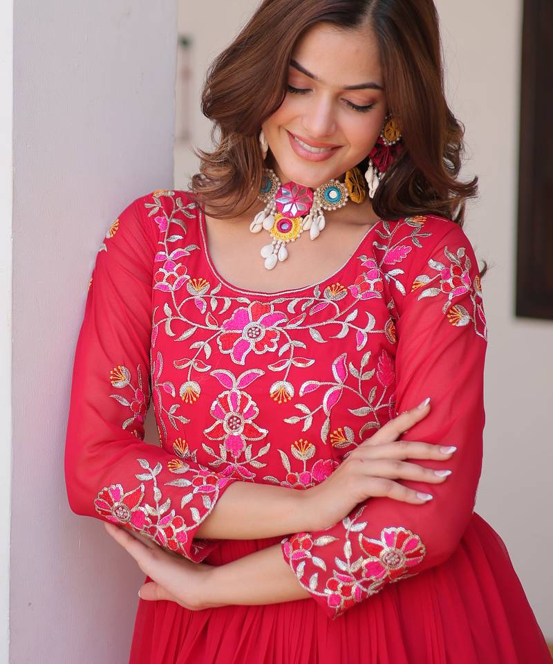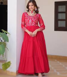 Rani pink festive wear designer fox georgette heavy 3mm sequence thread work readymade suit stitched