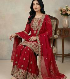 Red cord faux georgette salwar suit stitched