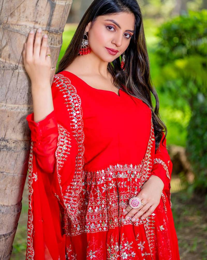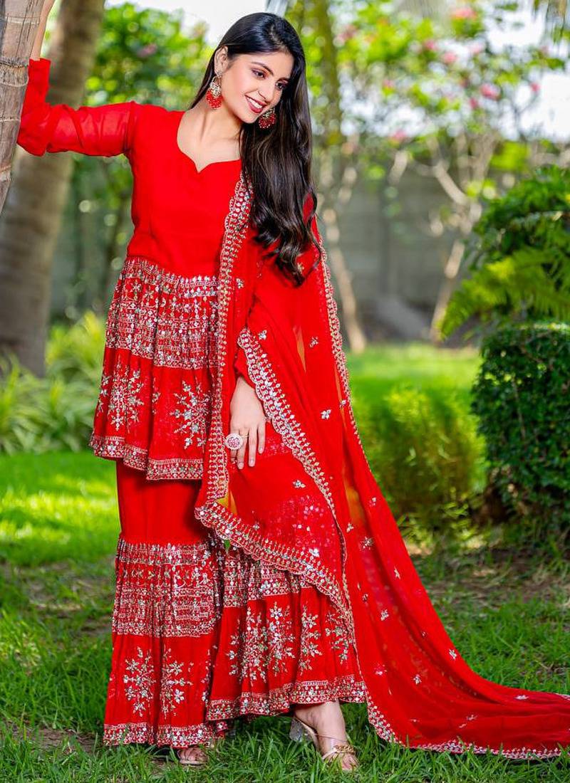 | Product Name | Red Festive Wear Designer Heavy Fox Georgette Readymade Suit | |