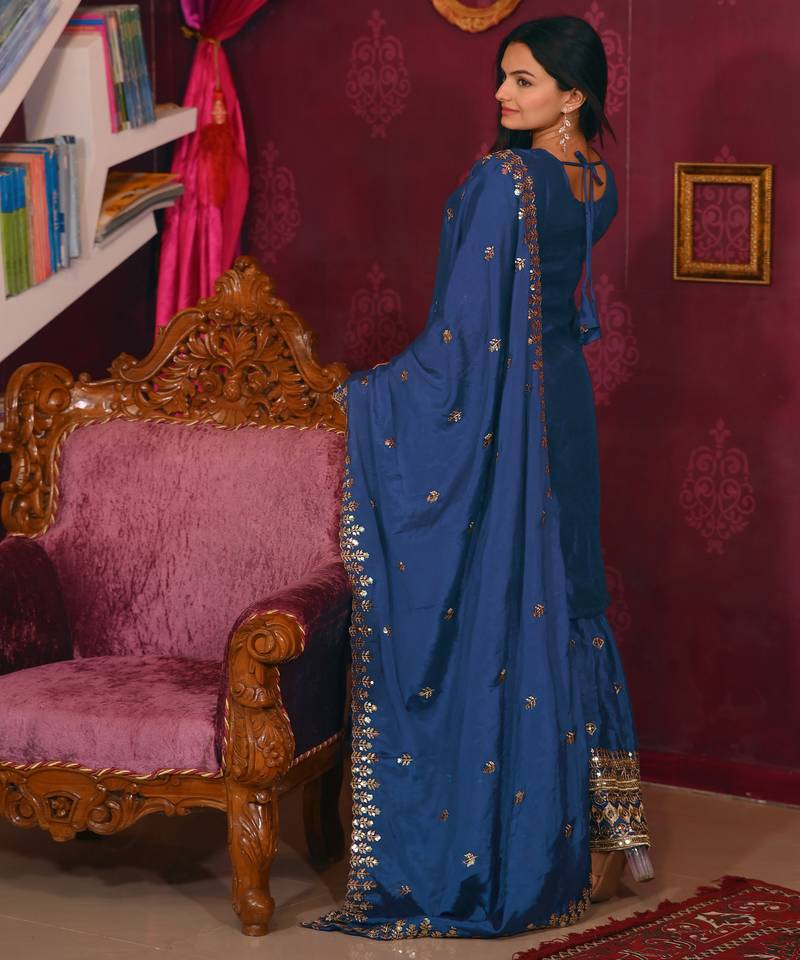 Teal festive wear designer chinon sequence embroidery work readymade suit stitched