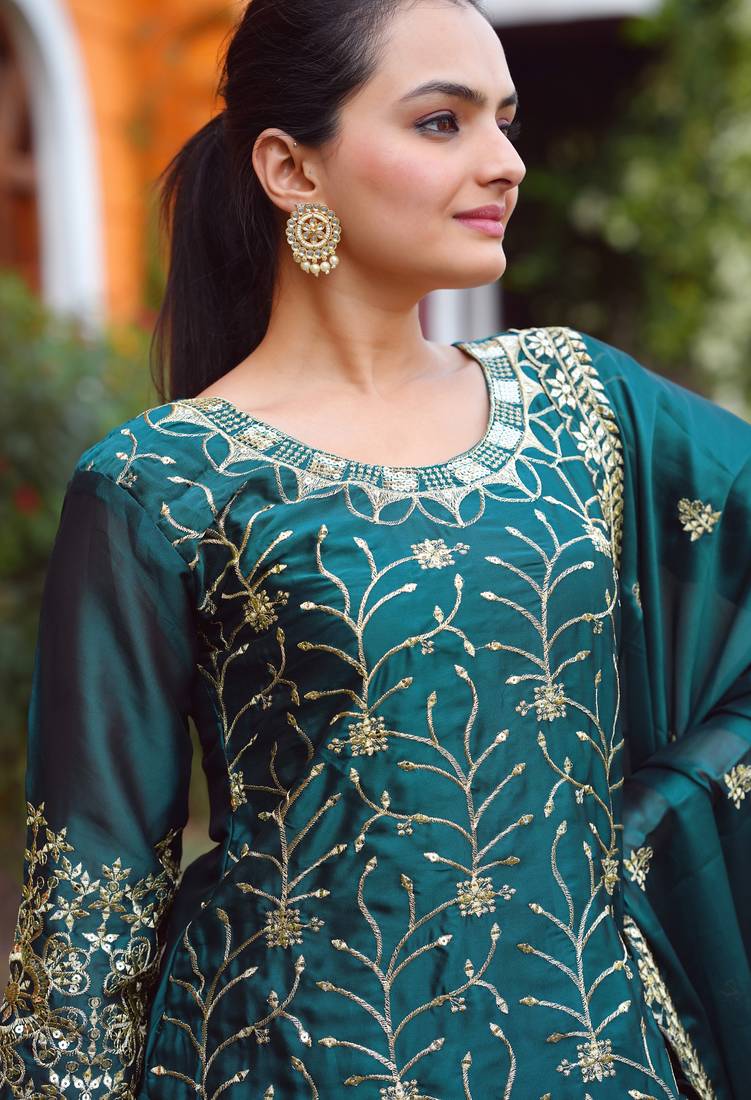 Teal festive wear designer rangoli sequence embroidery work readymade suit stitched