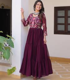 Wine festive wear designer fox georgette heavy 3mm sequence thread work readymade suit stitched