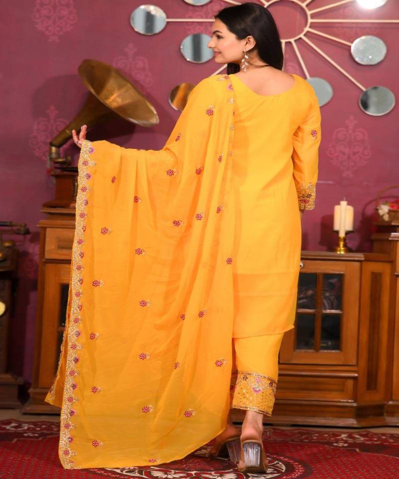 | • | Dupatta | : | Color- Yellow / Fabric- Georgette |