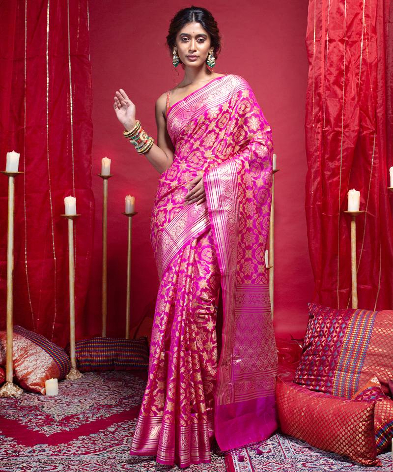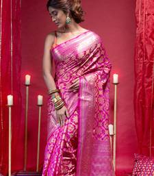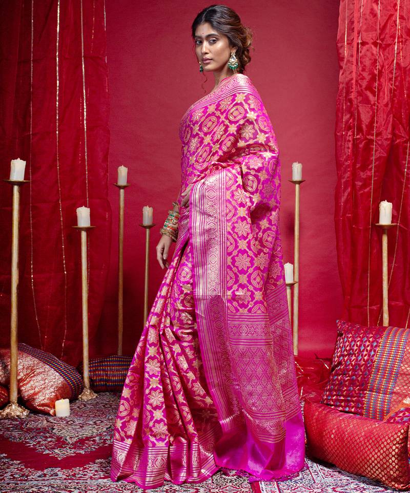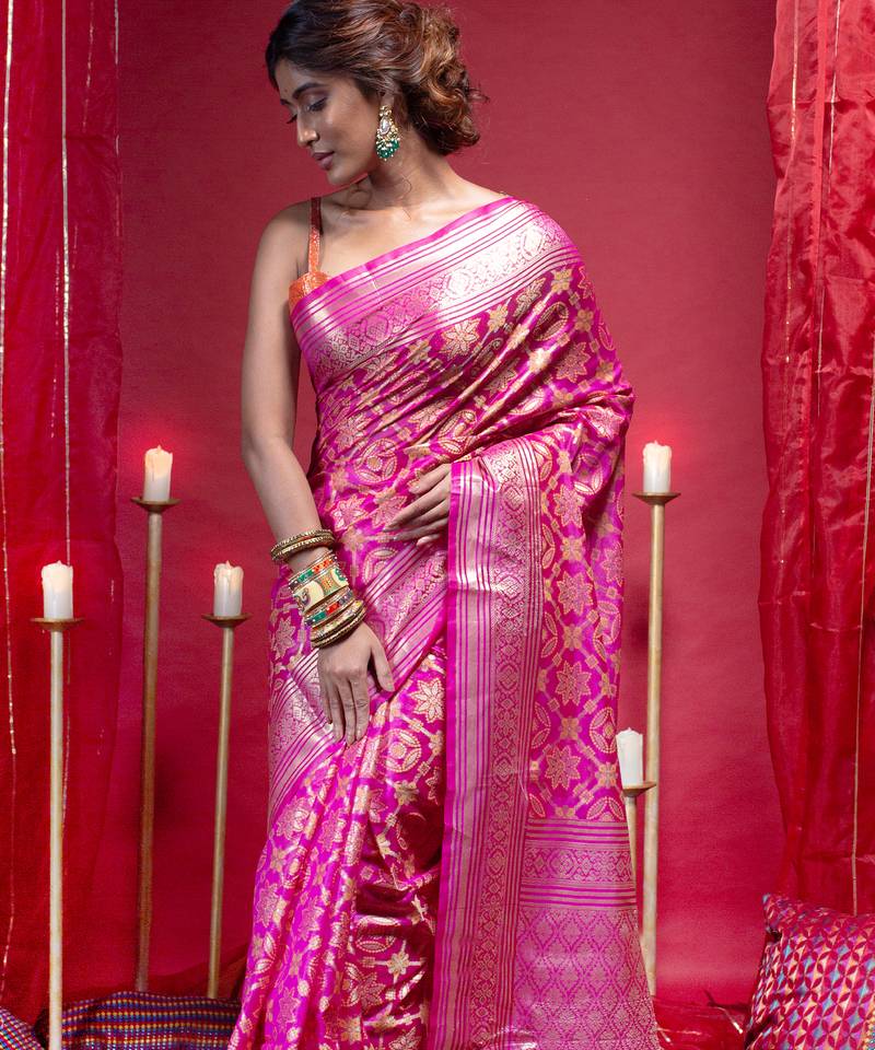 Banarasi chanderi silk saree in magenta color with full work zari jall and motifs