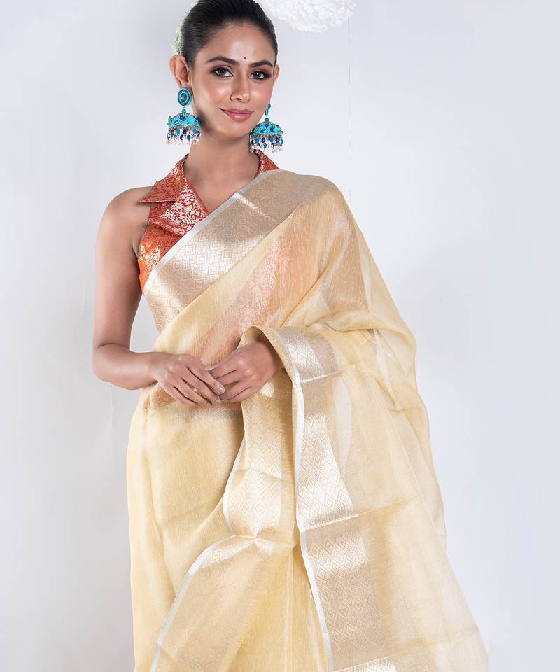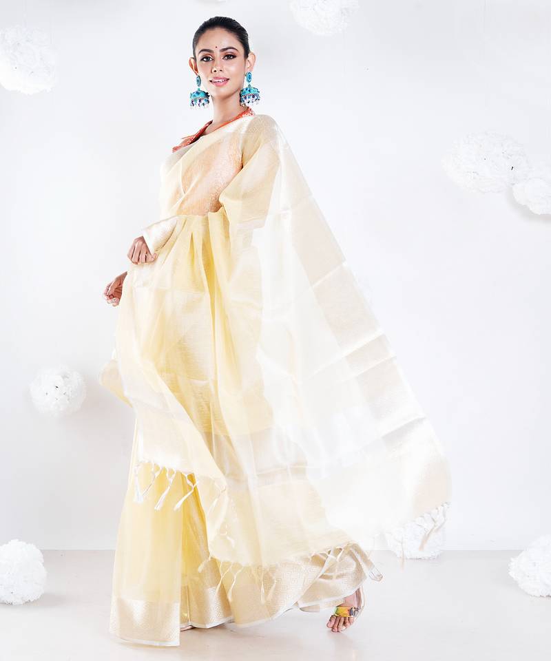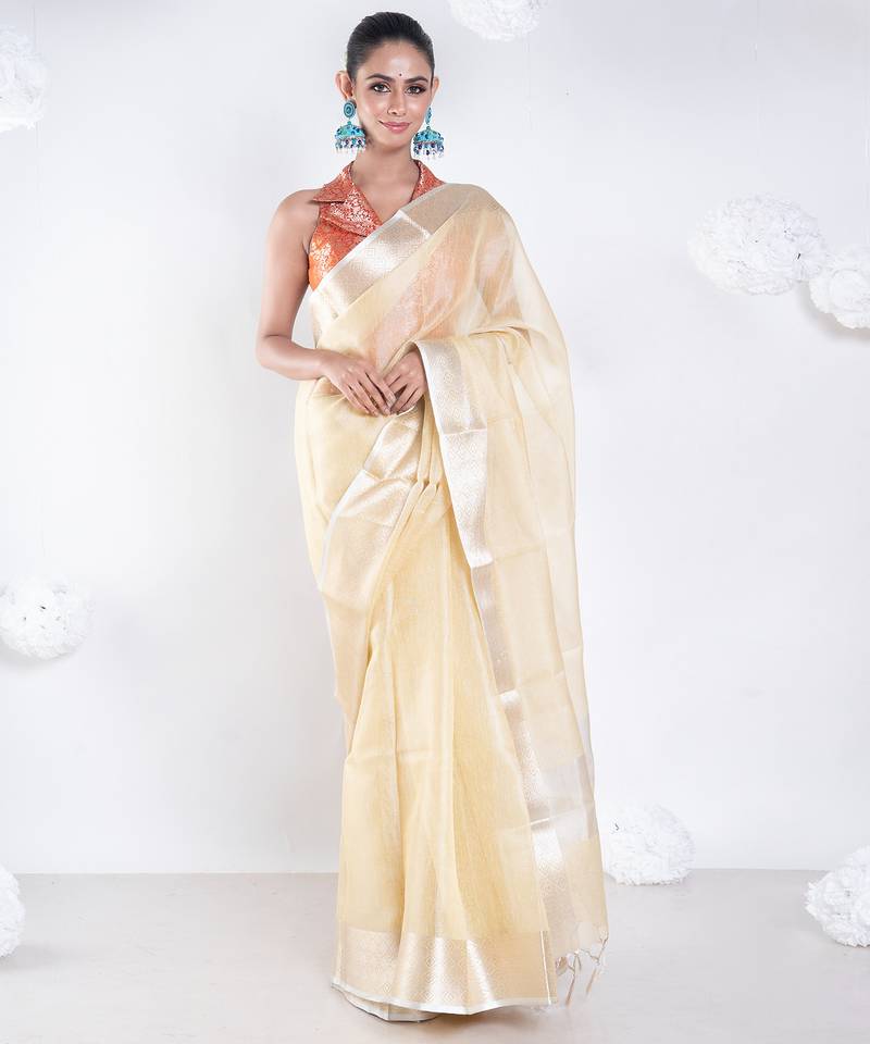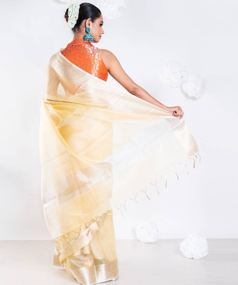 | Product Name | Banarasi Chanderi Saree In Vintage Yellow Color With Zari Border | |