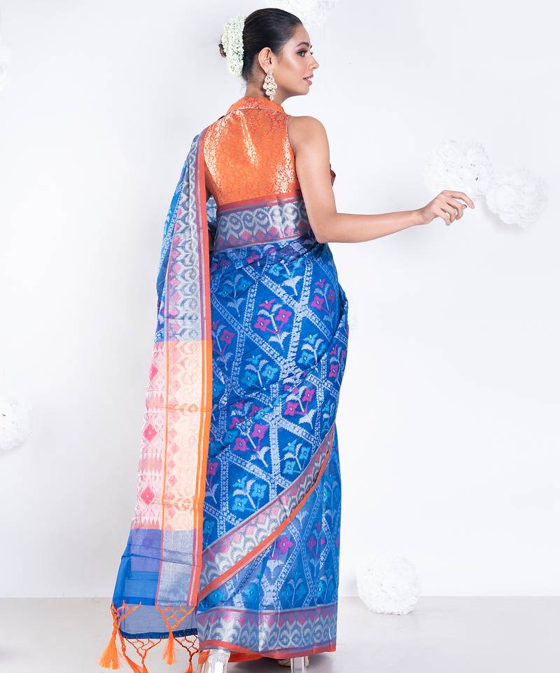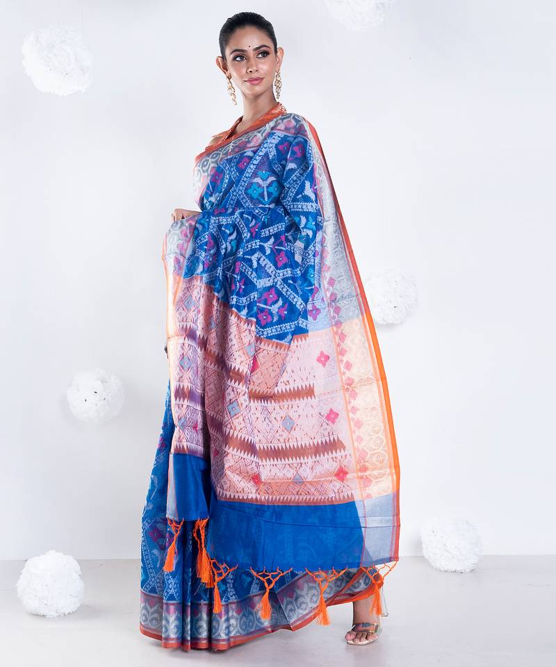 | Product Name | Varanasi Chanderi Saree In Blue Color With Tree Motifs And Golden Border | |