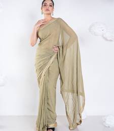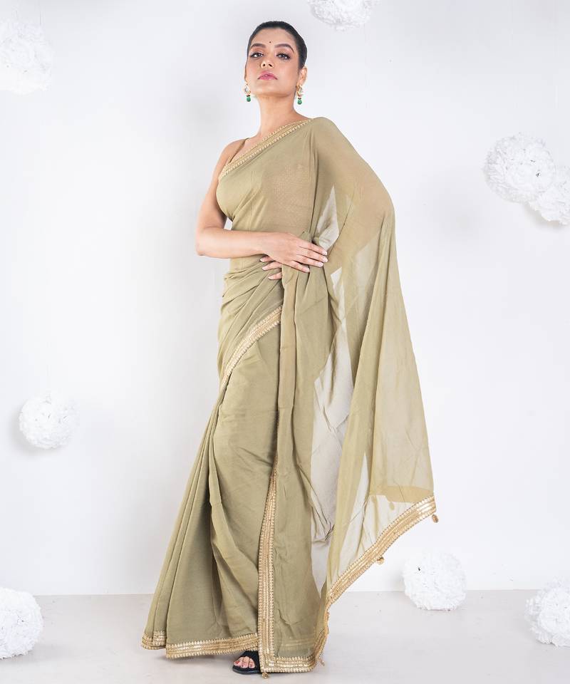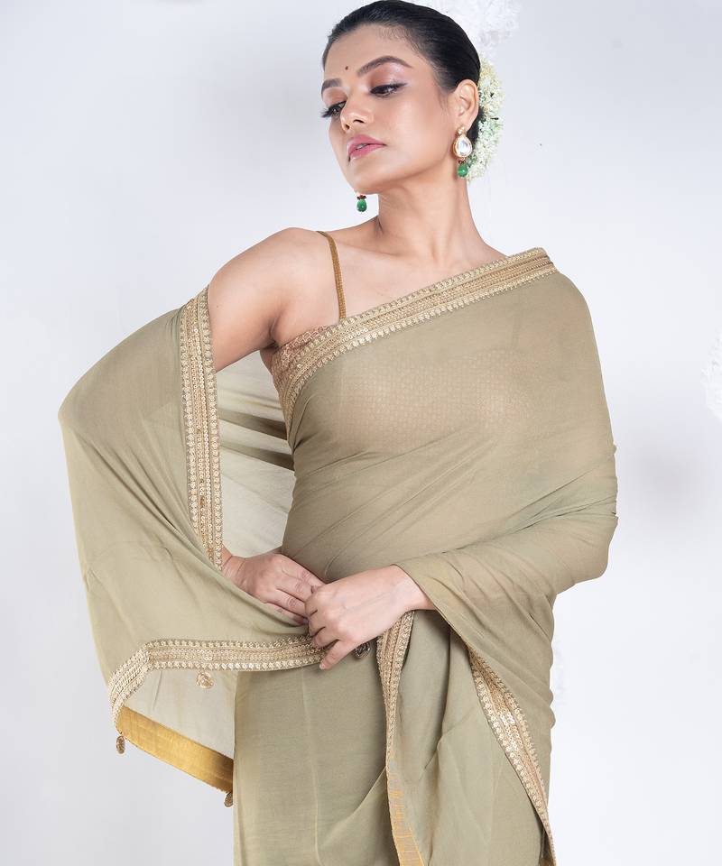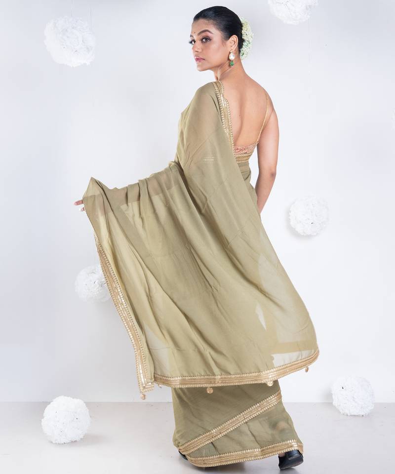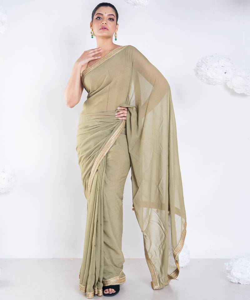 Georgette saree with olive green color with golden embroidered border