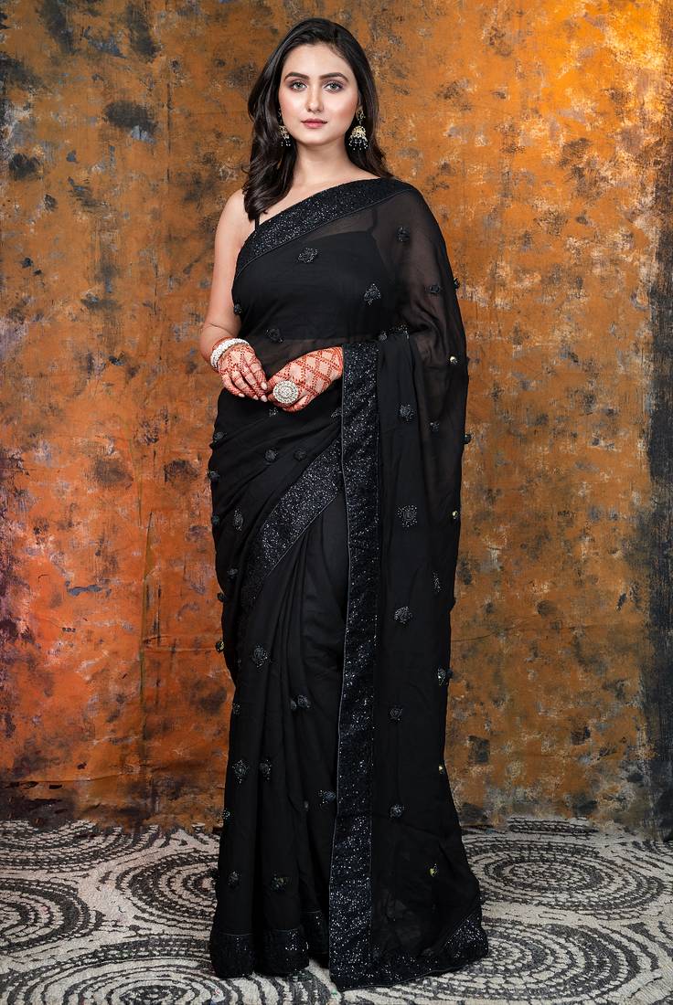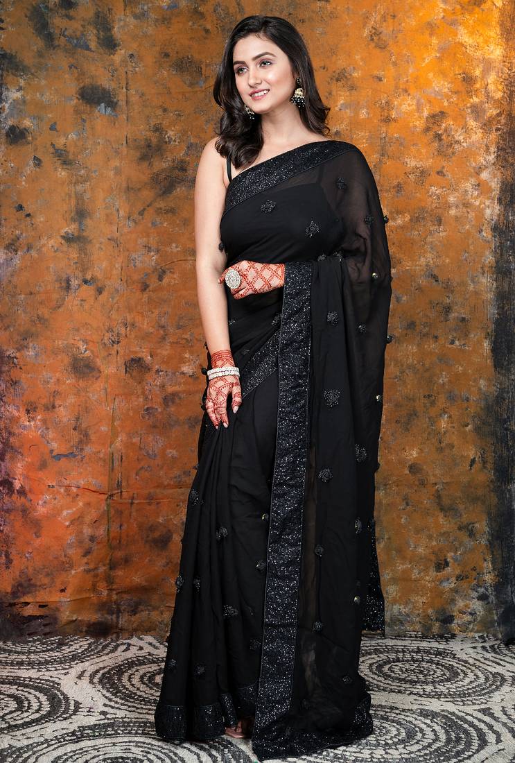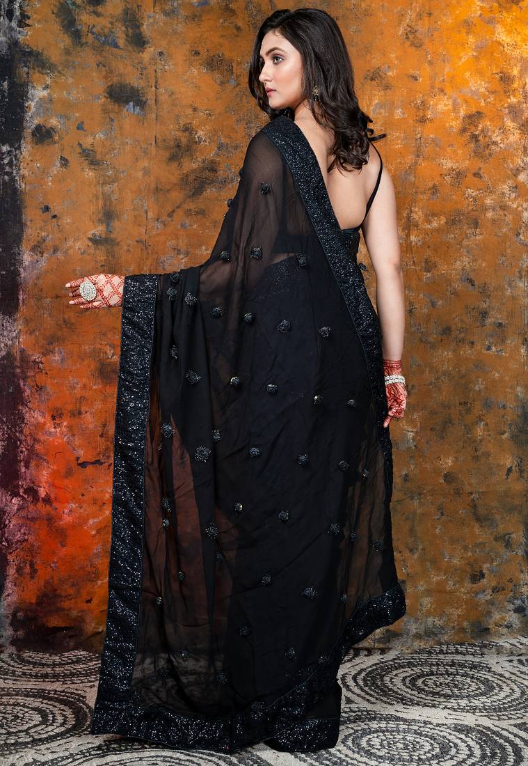| Product Name | Black Georgette Saree With Sequin Border And Handmade Rosette | |