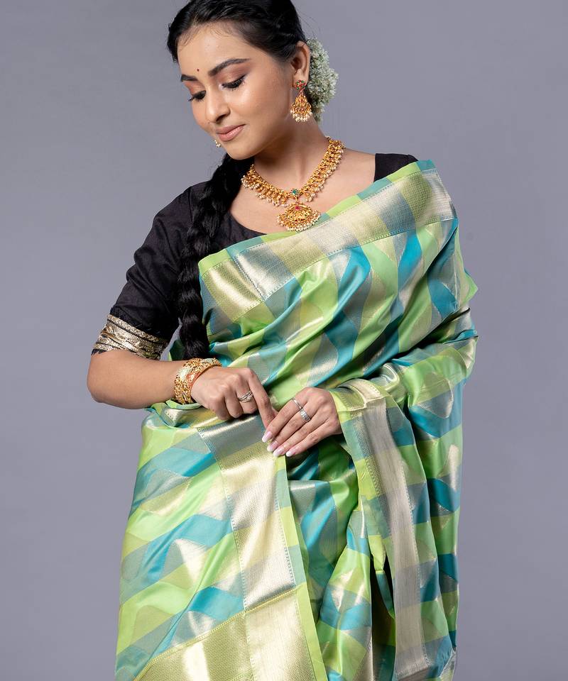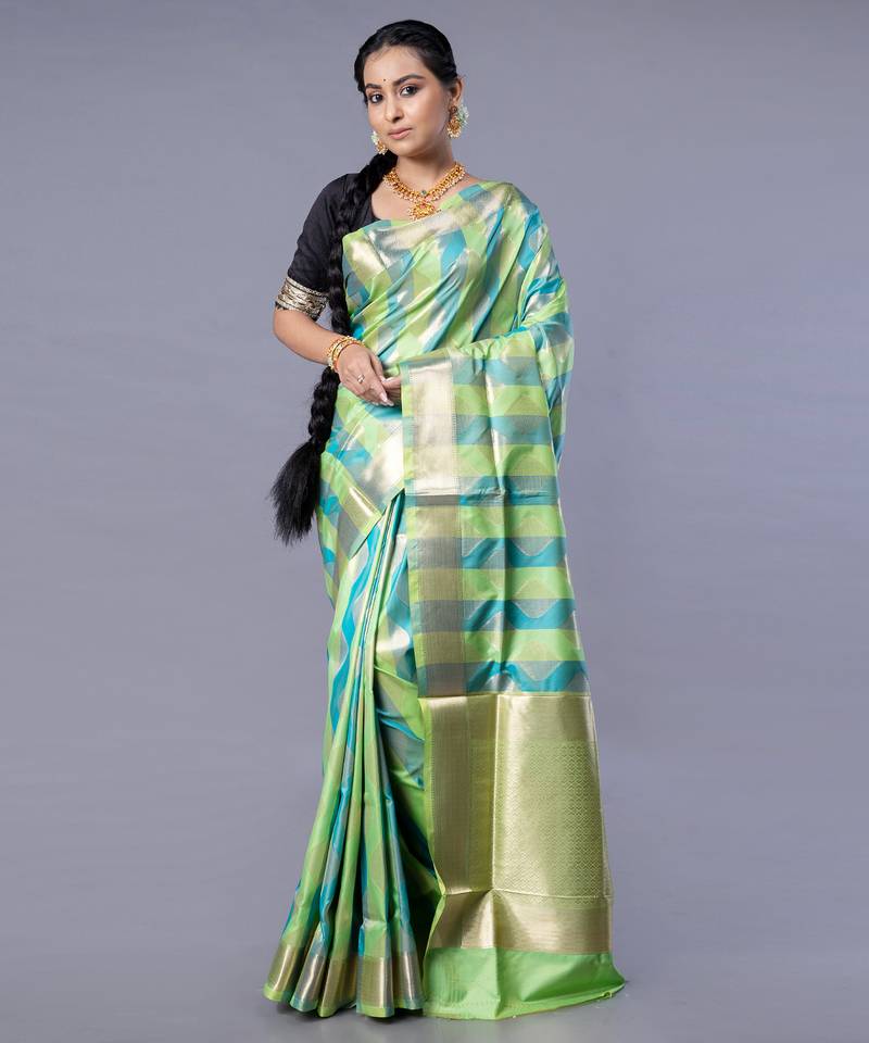 | Product Name | Kanjivaram Saree In Teal And Green Color With Golden Zari Border Boota | |