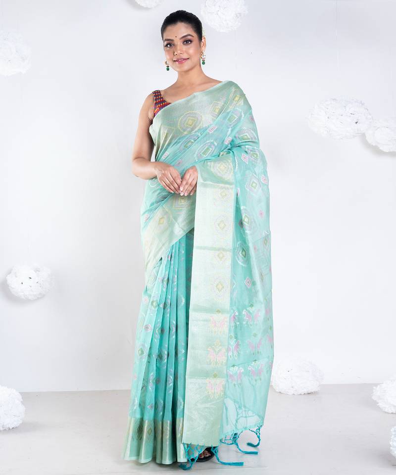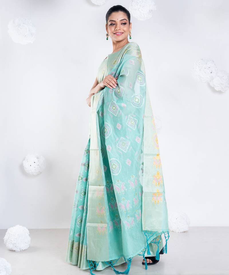 | Product Name | Banrasi Kora Organza Saree In Green Color With Multicolor Abstract Motifs And Zari Border | |