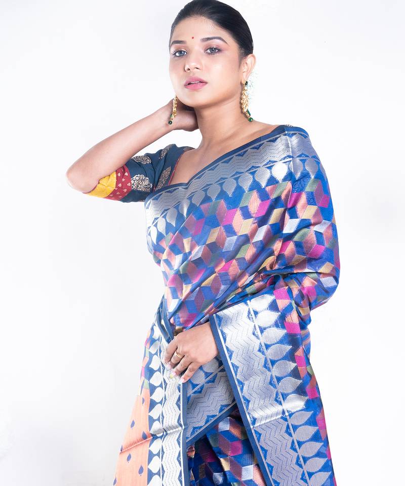 | Product Name | Banarasi Kora Organza Saree In Navy Blue Color With Multicolor Motifs With Copper Zari | |