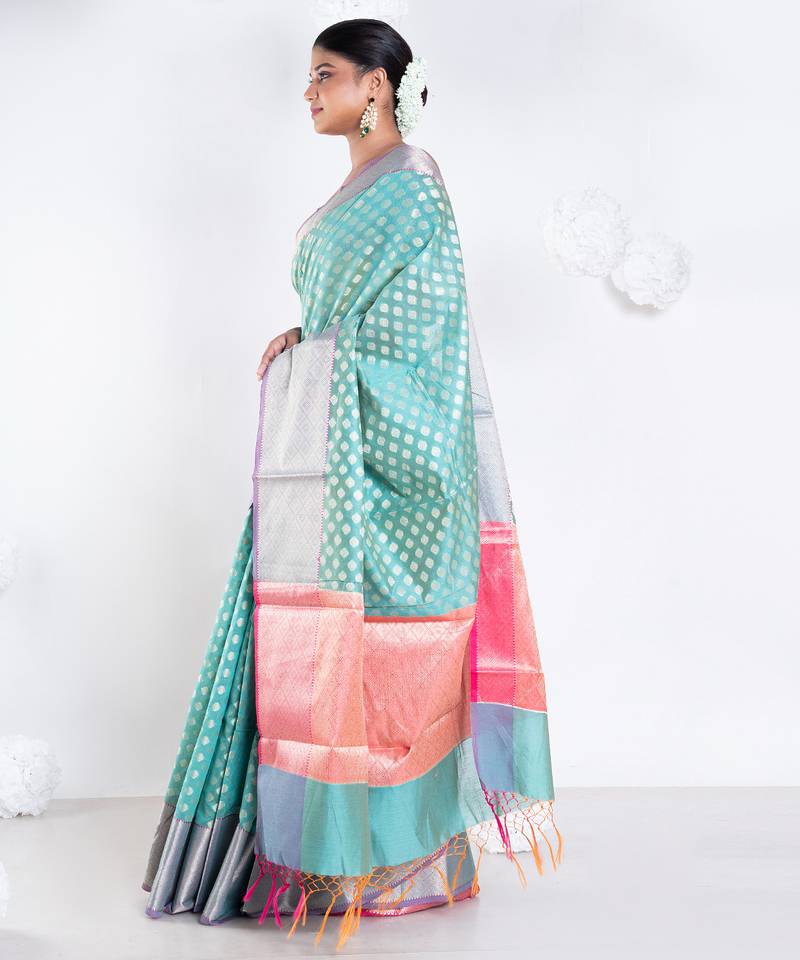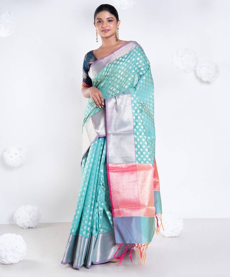 | Product Name | Banarasi Kora Organza Saree In Green Color With Golden Border And Booti | |