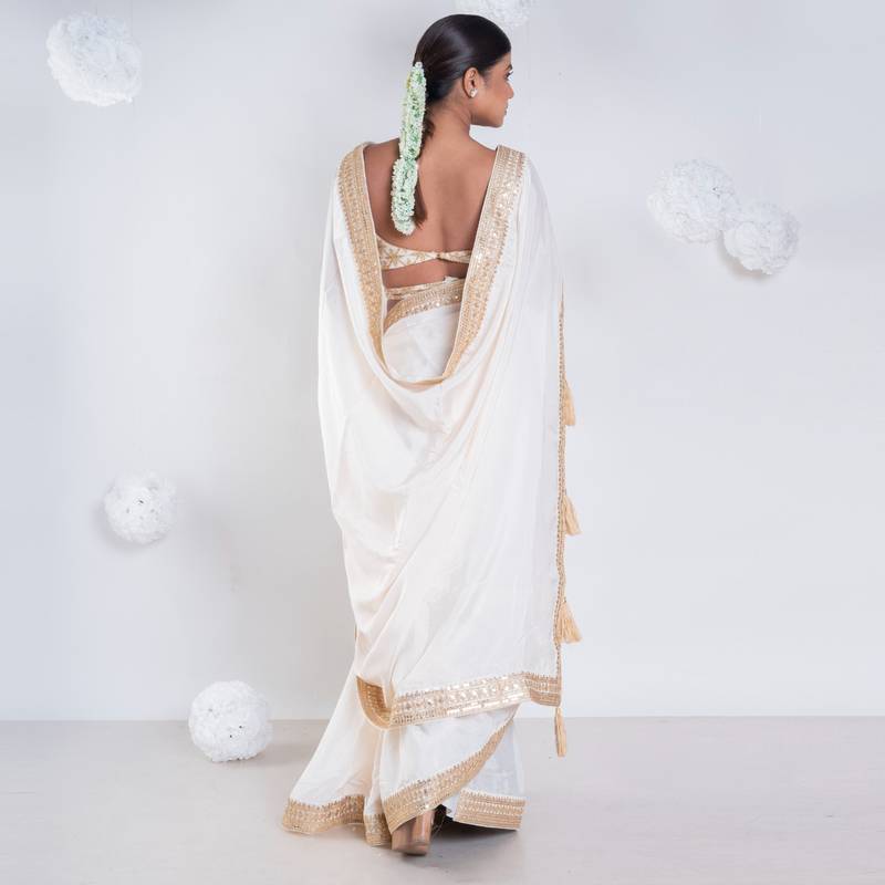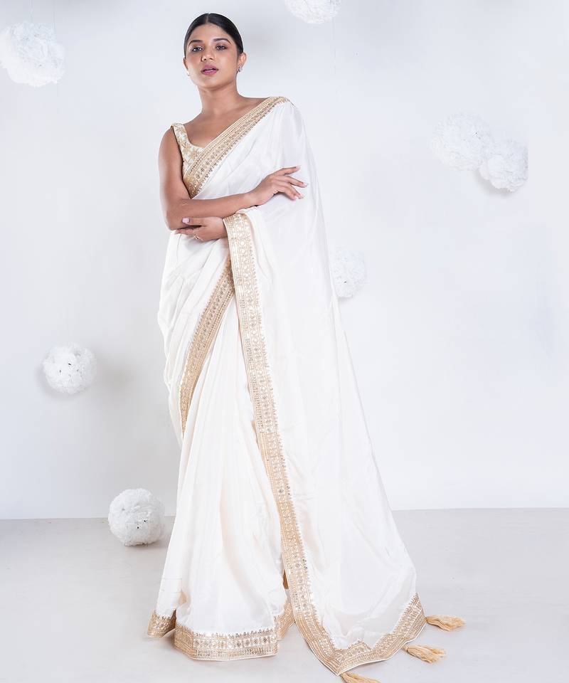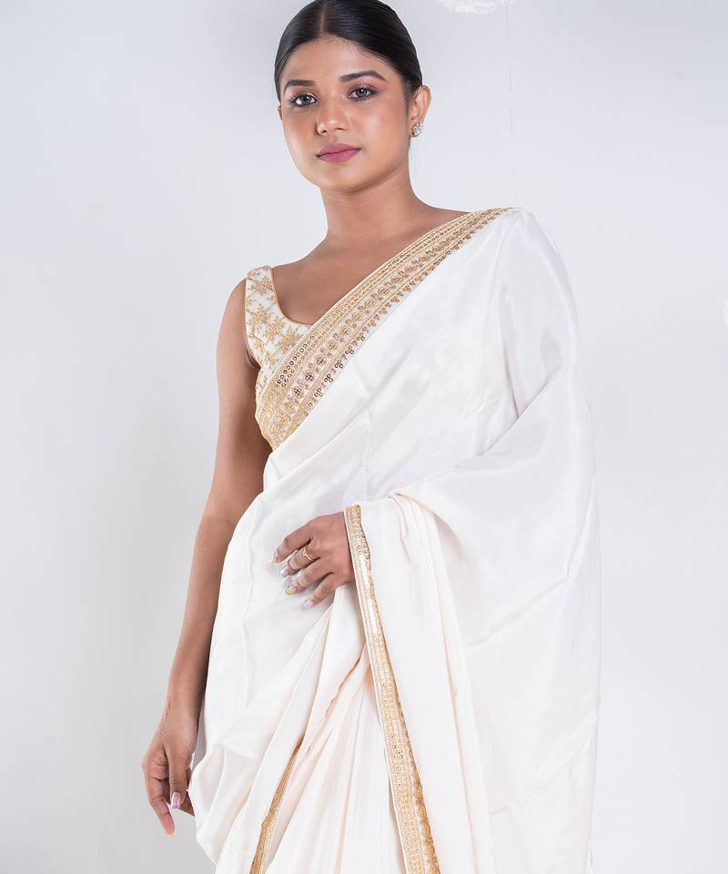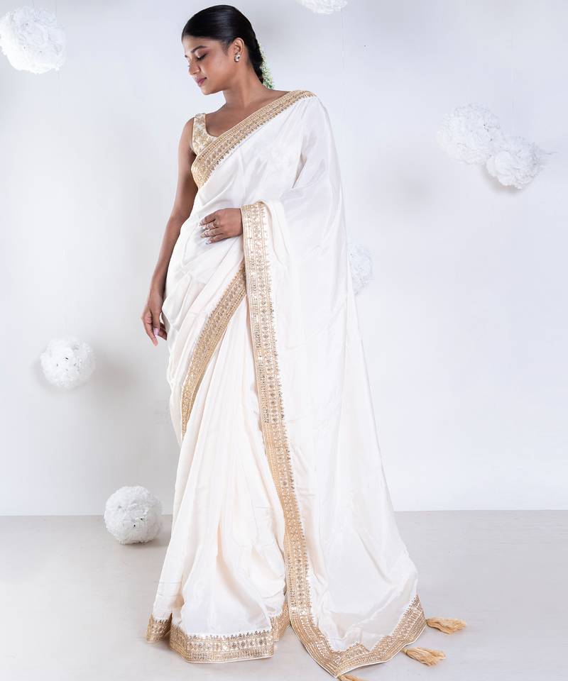 | Product Name | Habutai Silk Saree With Ivory Color With Golden Embroidered Border | |