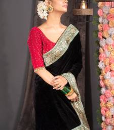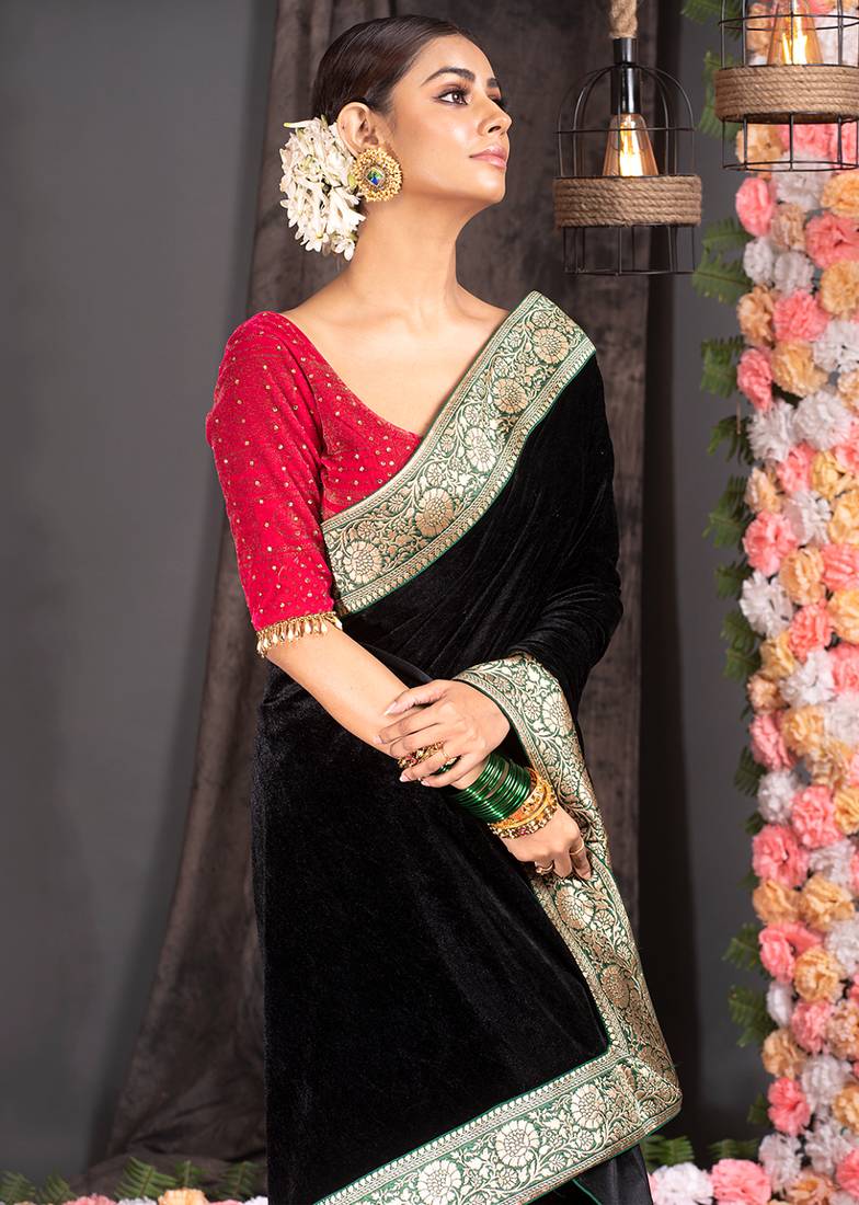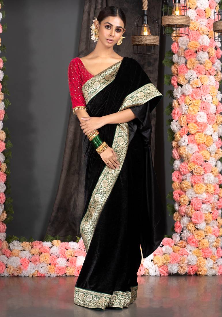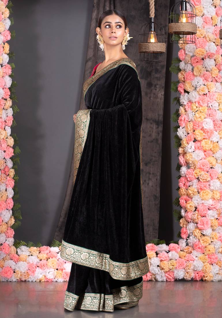 Black velvet saree with brocade banarasi border
