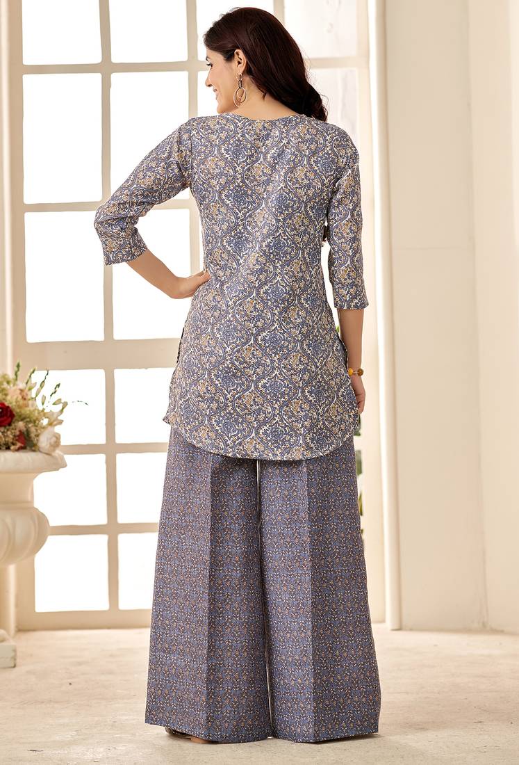 | Product Description | Elevate Your Everyday Ethnic Style With This Elegant Mauve Printed Cotton Kurta And Palazzo Set. Designed For Both Comfort And Charm, This Outfit Features A Soft Cotton Fabric Adorned With Intricate Floral Motifs That Exude Sophistication. The Kurta Showcases A V Notch Round Neckline And Three Quarter Sleeves, Offering A Perfect Blend Of Traditional Grace And Modern Simplicity. The Coordinated Palazzo Pants Complete The Look With Effortless Ease, Ideal For Daily Wear, Work, Or Casual Gatherings. |