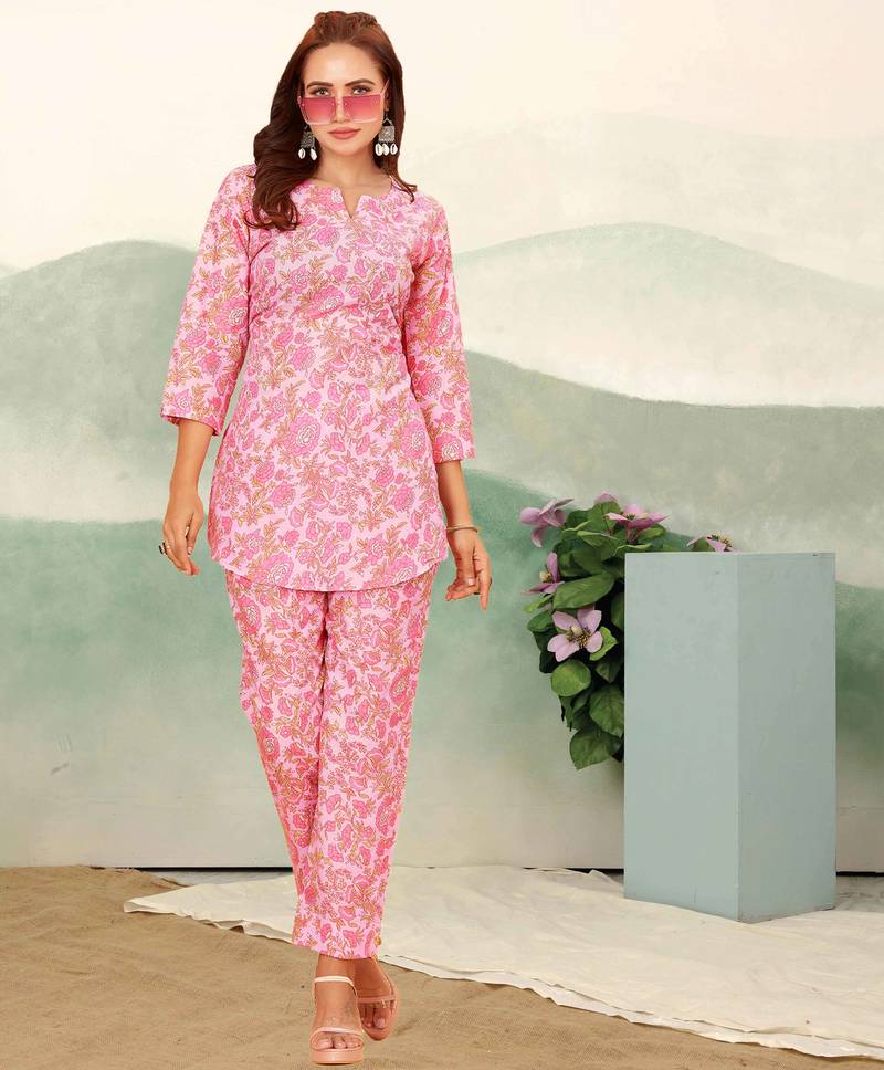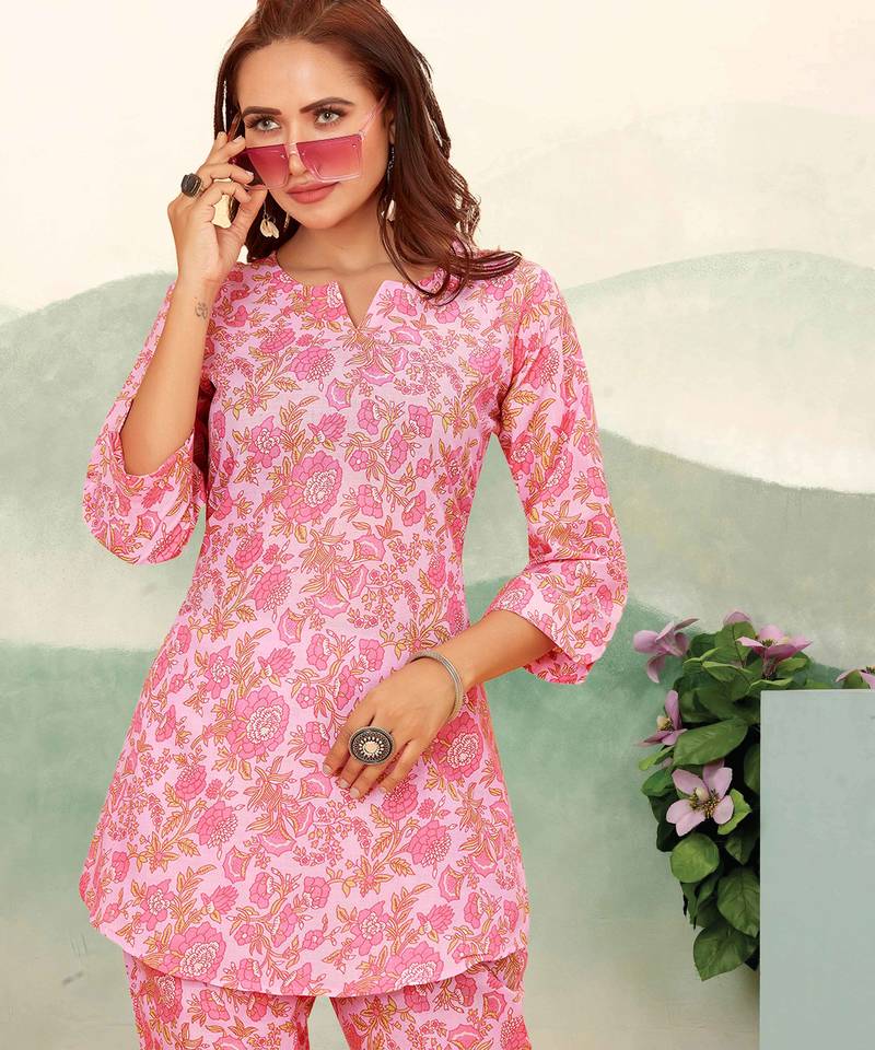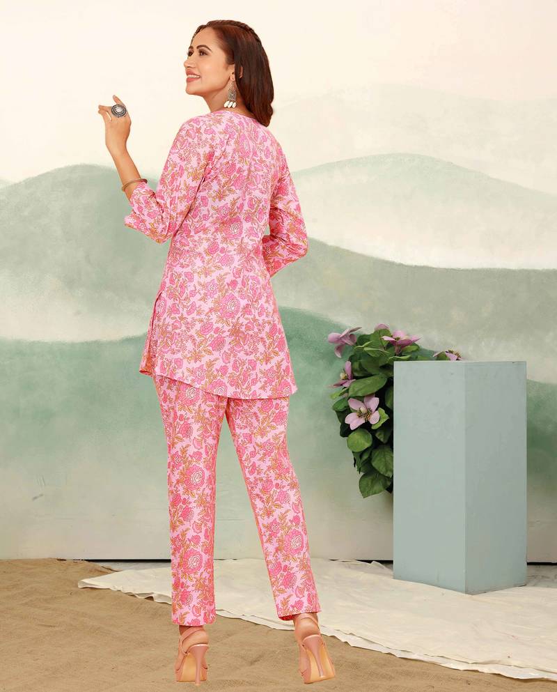| Product Name | Light Pink Floral Print Cotton Blend Co Ord Set For Women | |