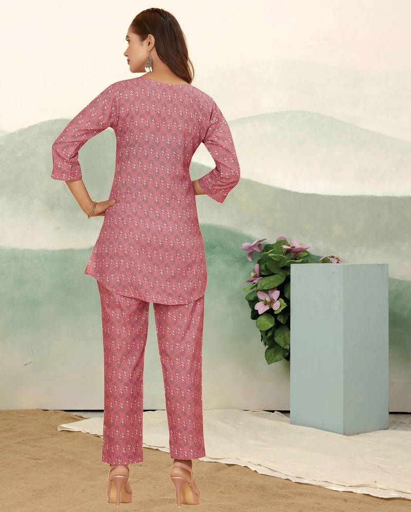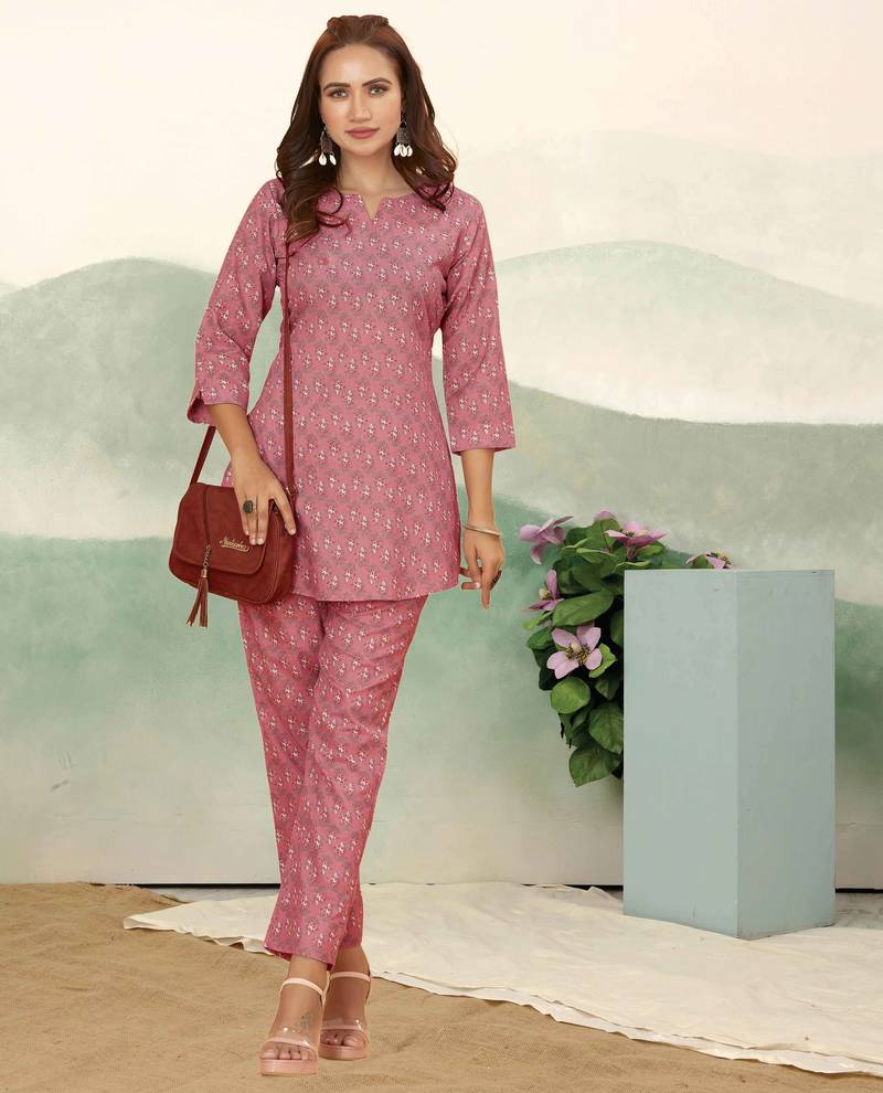 | Product Name | Pink Ethnic Print Cotton Blend Co Ord Set For Women | |