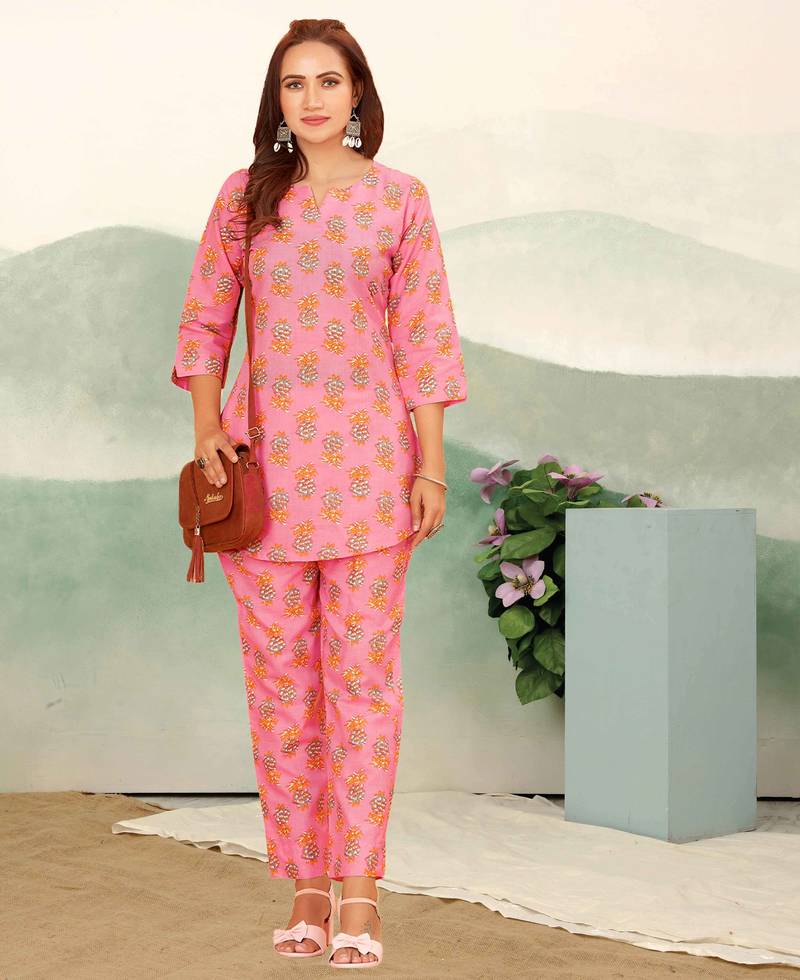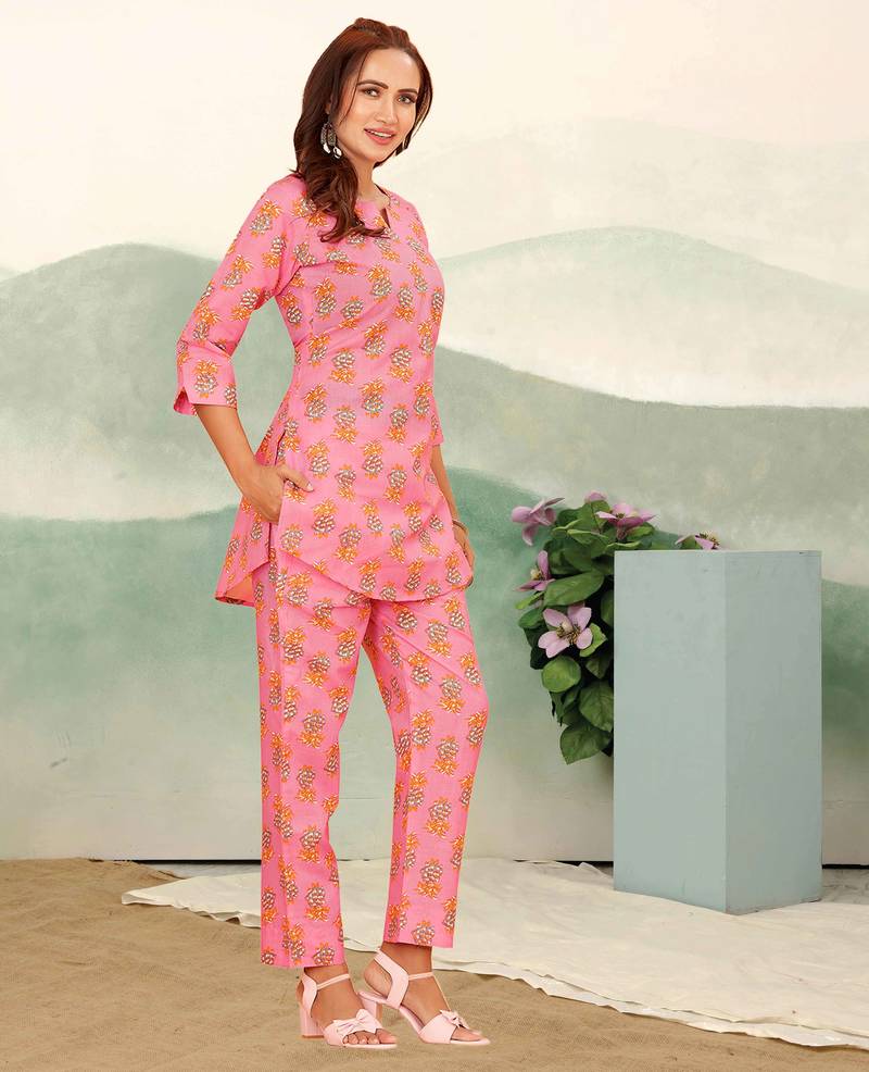 | Product Name | Pink Floral Print Cotton Blend Co Ord Set For Women | |