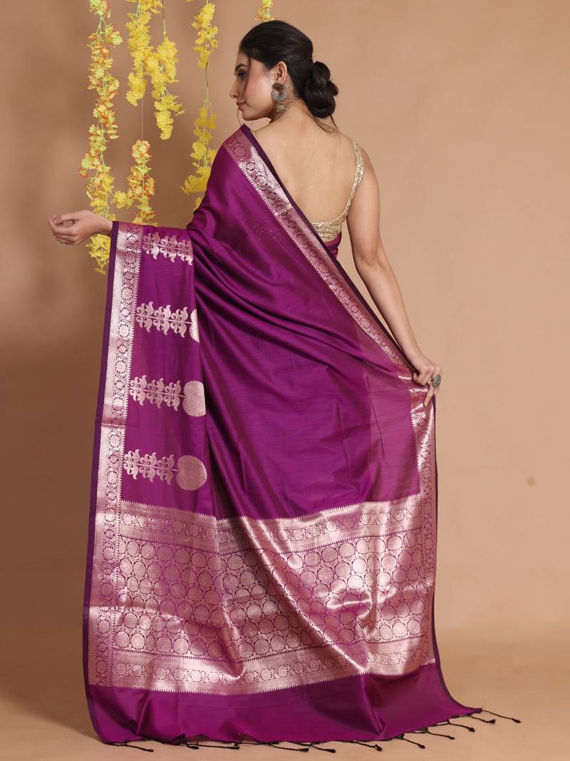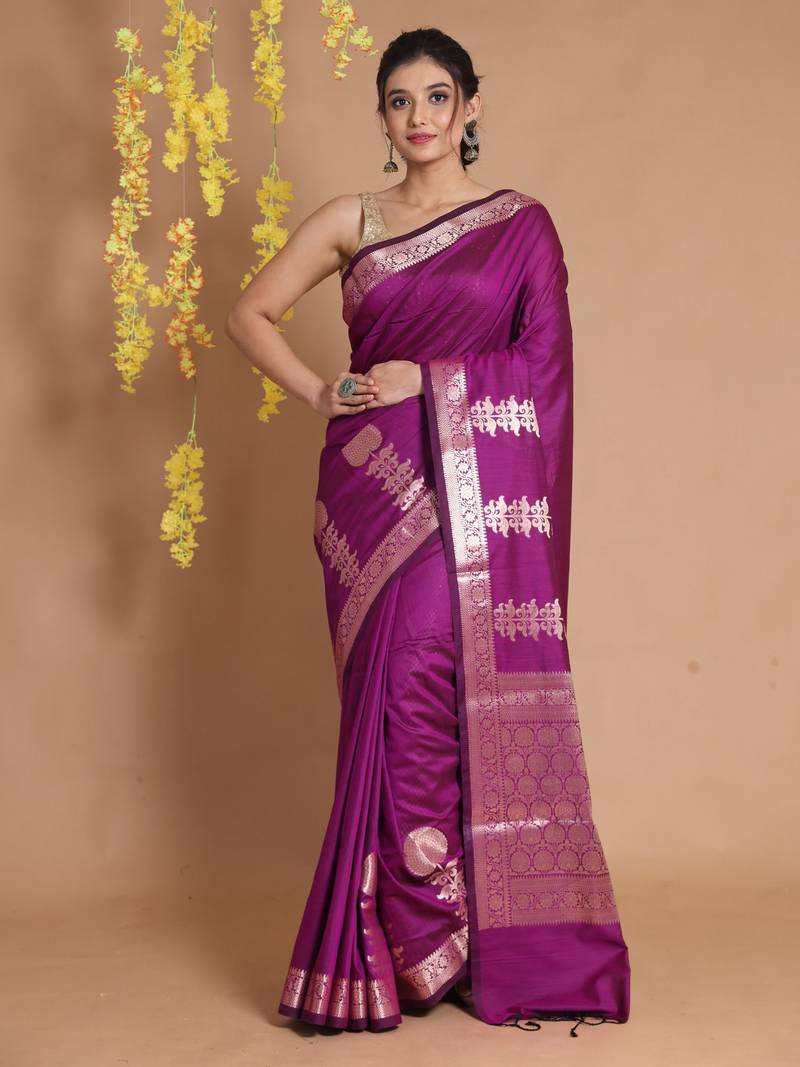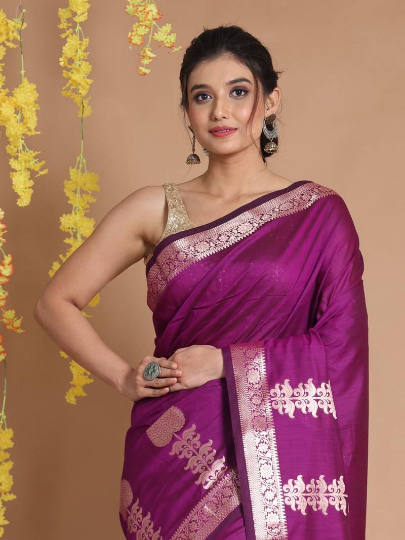 | Product Name | Purple Silk Handwoven Saree With Zari Woven Floral Designs And Motifs | |