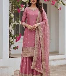 Blush pink embroidered sharara suit stitched