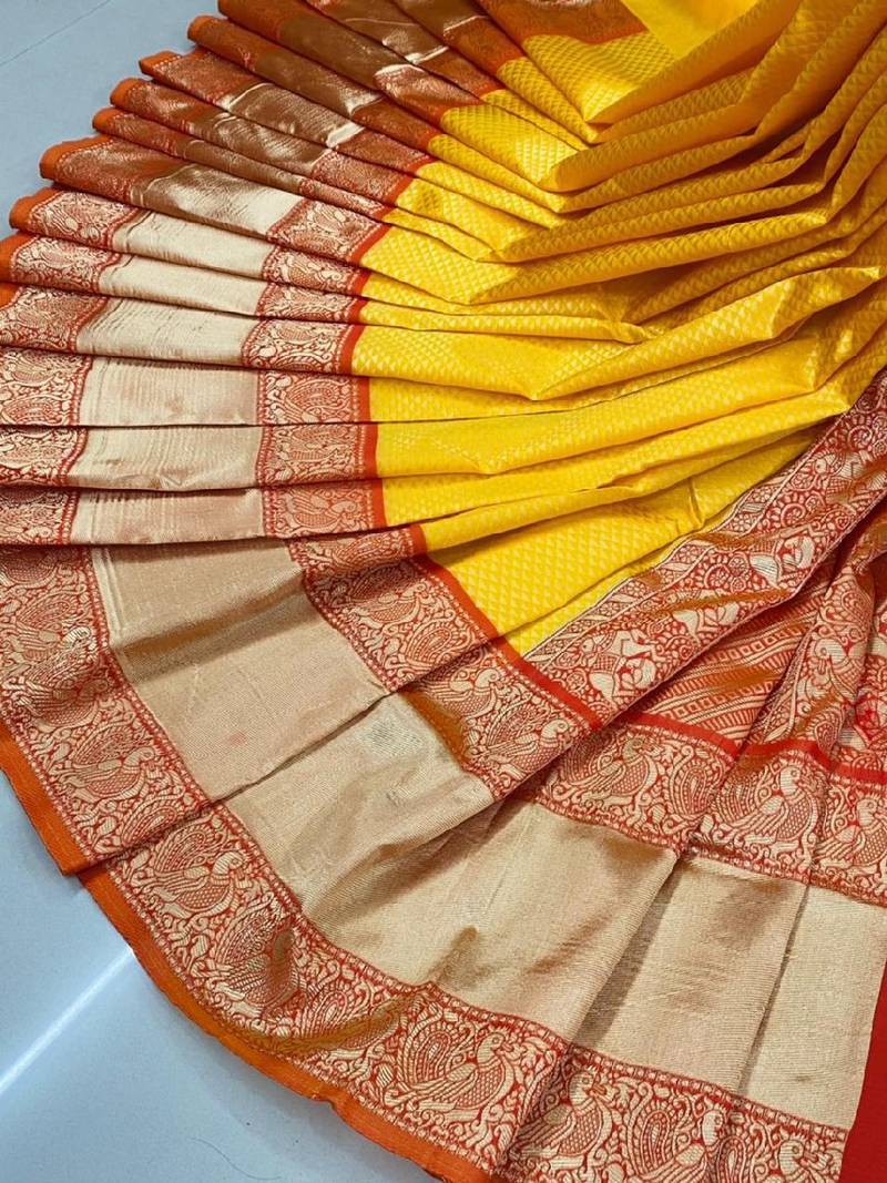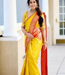 Bright yellow traditional silk blend saree